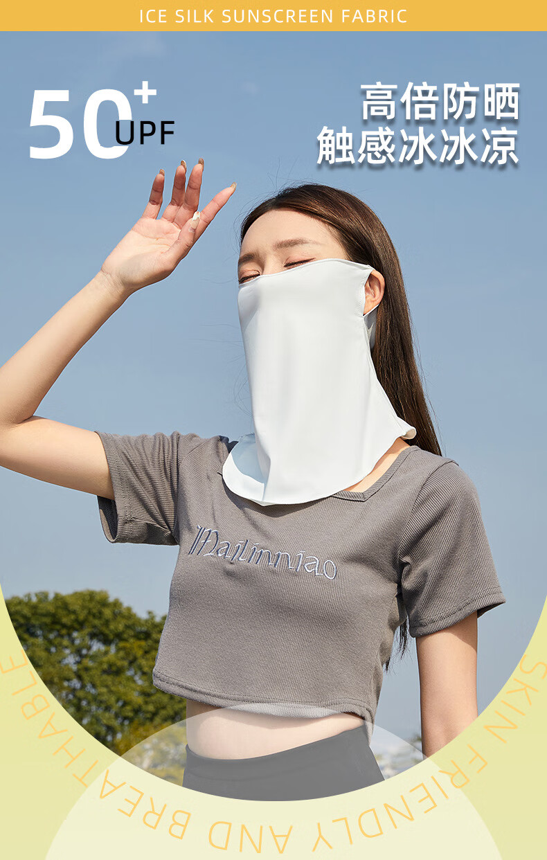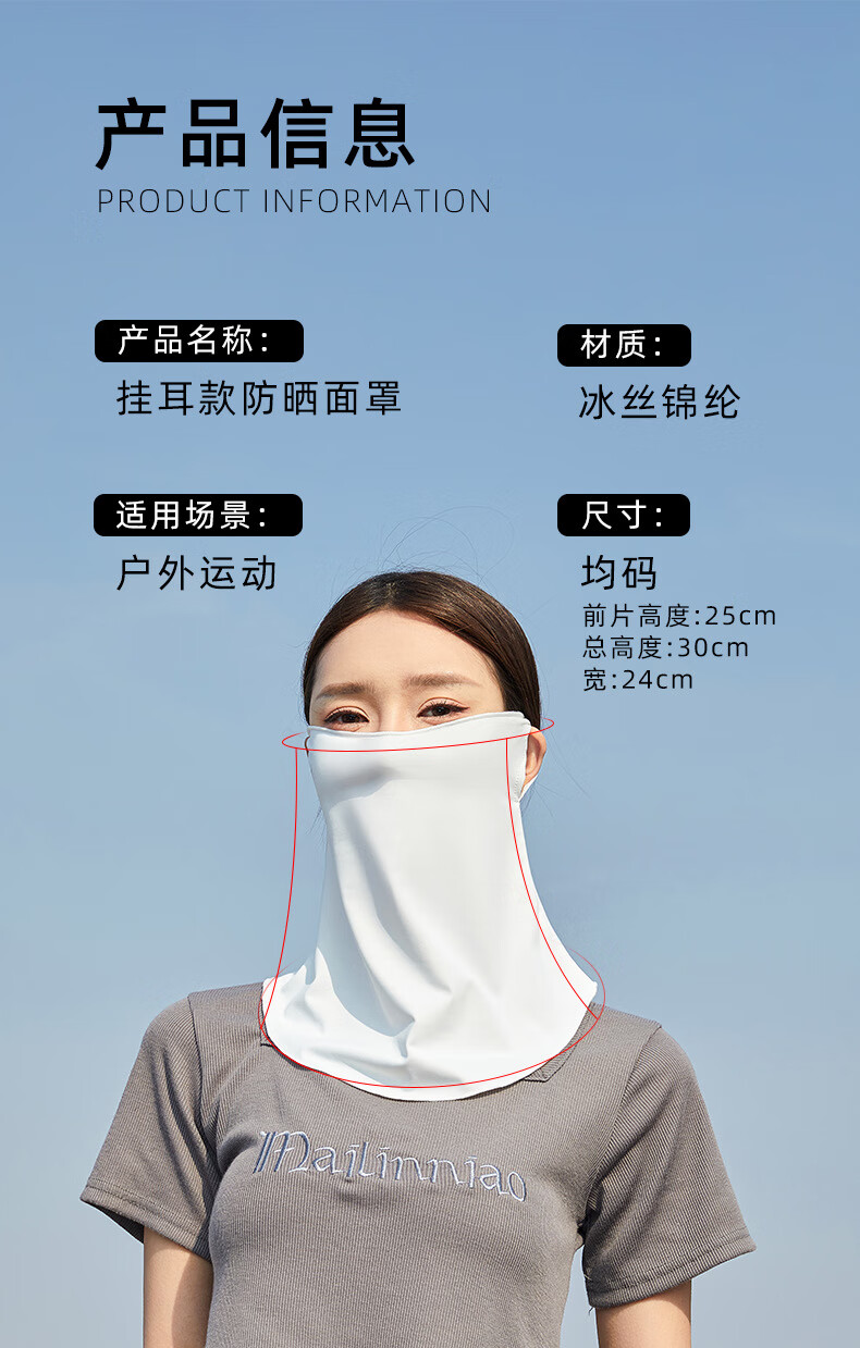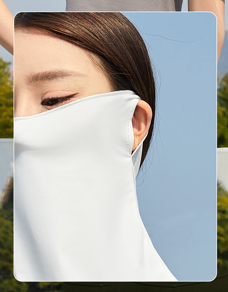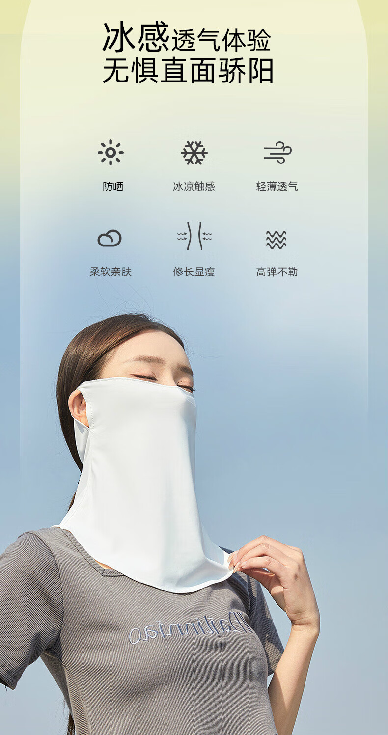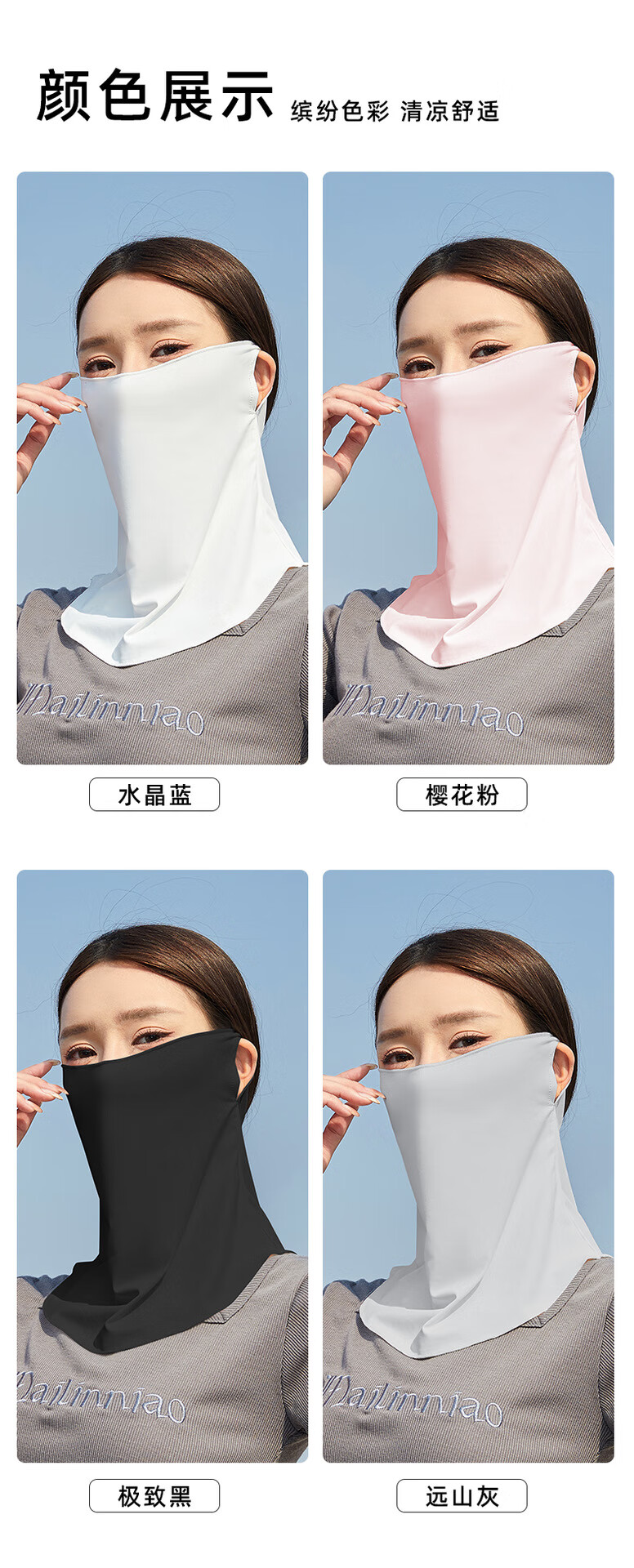 槿城冰丝防晒面罩女夏护颈遮阳透气骑行防晒面纱面巾挂耳面罩BT-09 云朵白【两个装】