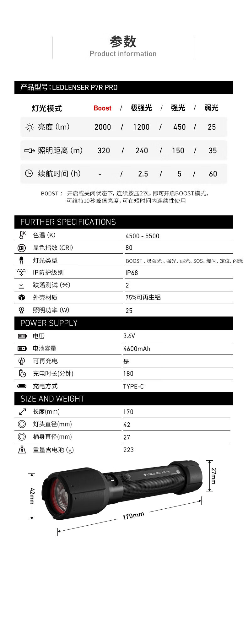 LED LENSER莱德雷神强光手电筒P7R PRO P7R PRO