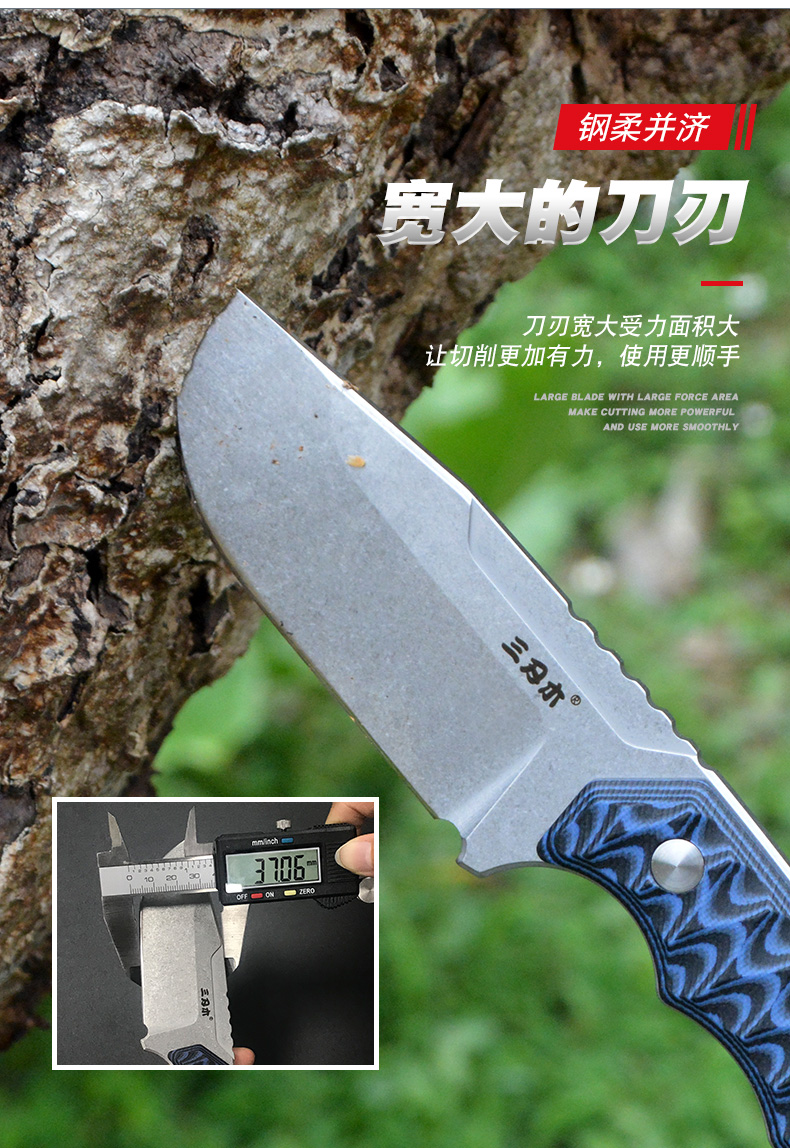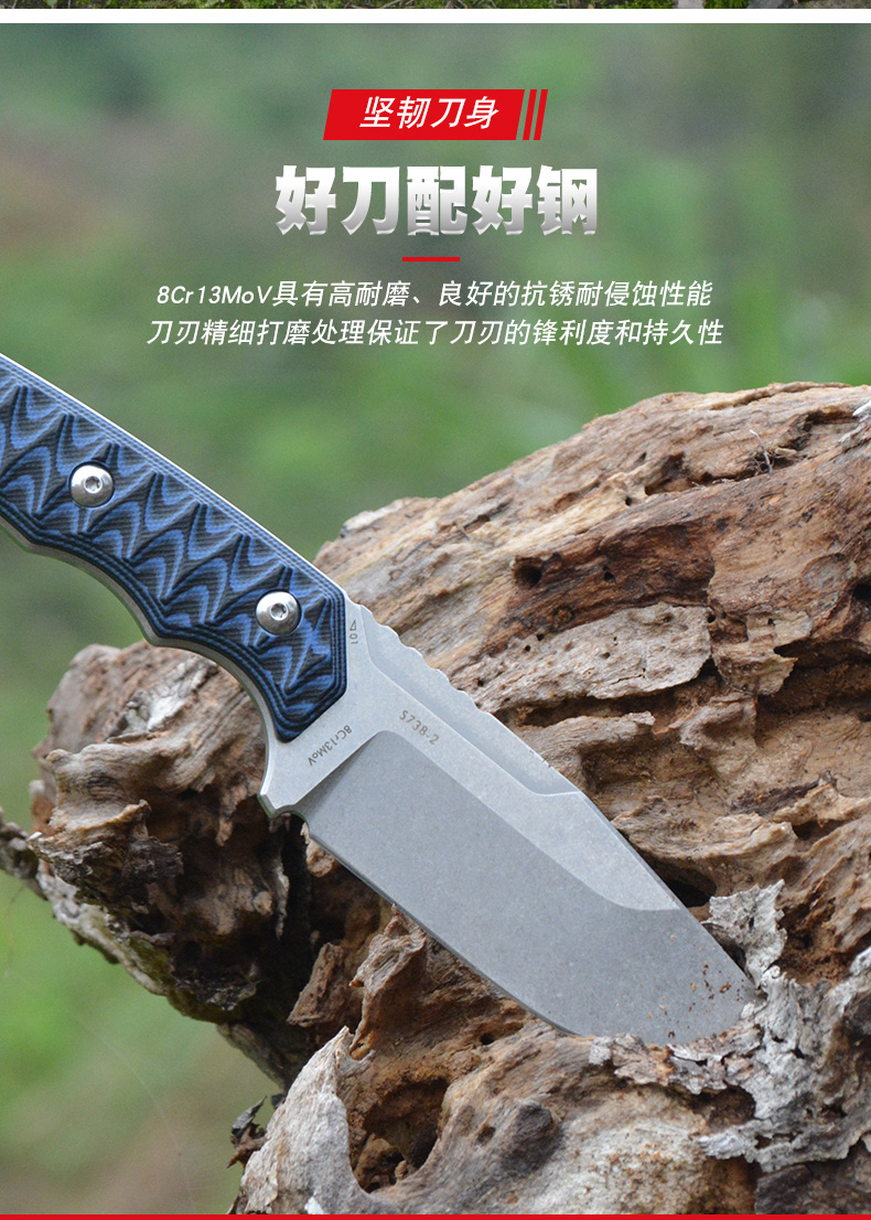 三刃木s738这款生存刀已经留意了很久,刀身材质很好,宽大锋利,看着很有力量,刀柄材质也还不错,持握舒适不滑手,总体感觉很满意