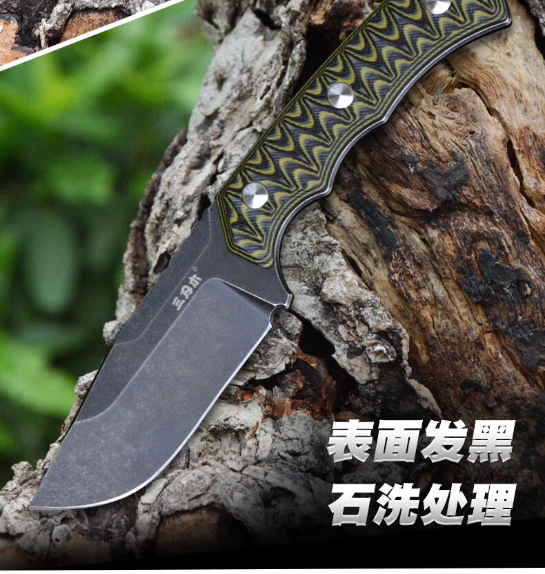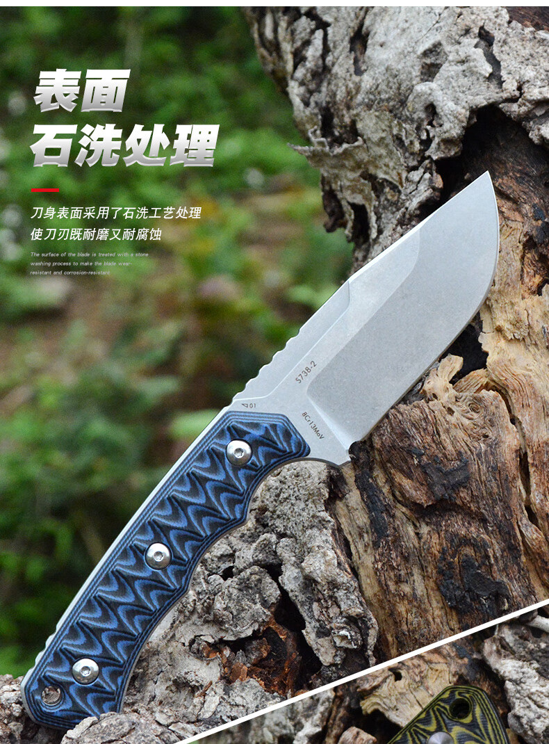三刃木S738户外直刀野外生存刀长款一体刀具防身露营野营刀把肉刀 S738石洗黑色