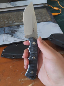 总体来说十分满意,钢材选用的也十分的好,造型适合劈砍,美中不足的是,刀具的厚度是把握的非常好的,不过还是野营户外的利器,十分美观,物美价廉