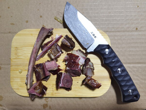 户外最喜欢用的一把刀,刀身很宽切菜的时候手指不会碰到菜板(这点很重要),有点小菜刀的感觉,拿出来也不会像尖刀那样给人压迫感太强。而且便宜随便造也不心疼,非常实用的刀。