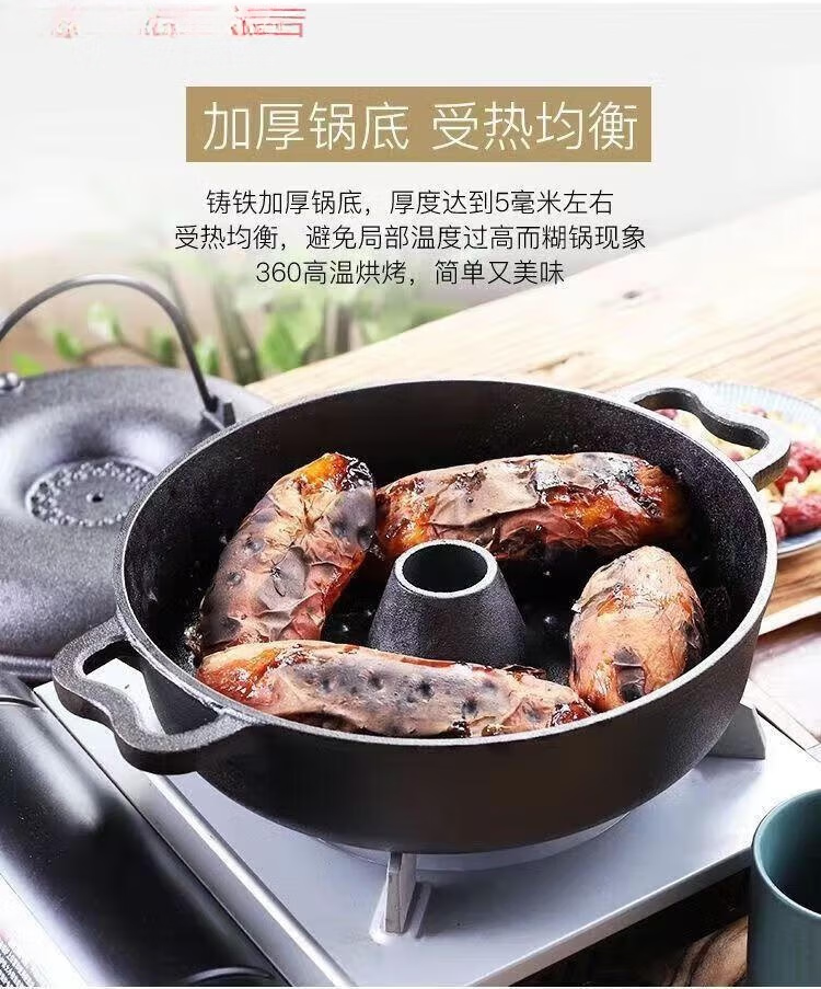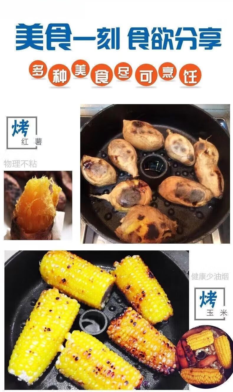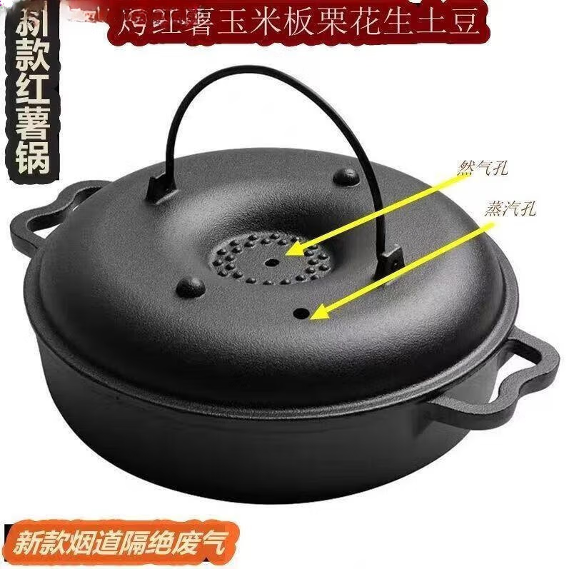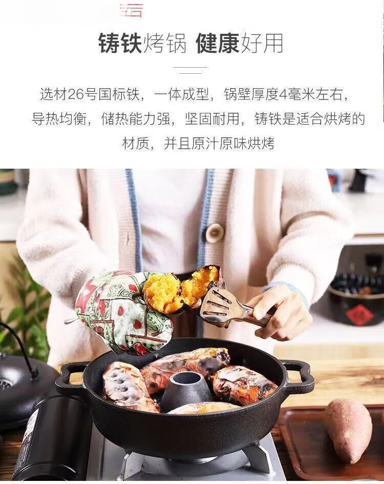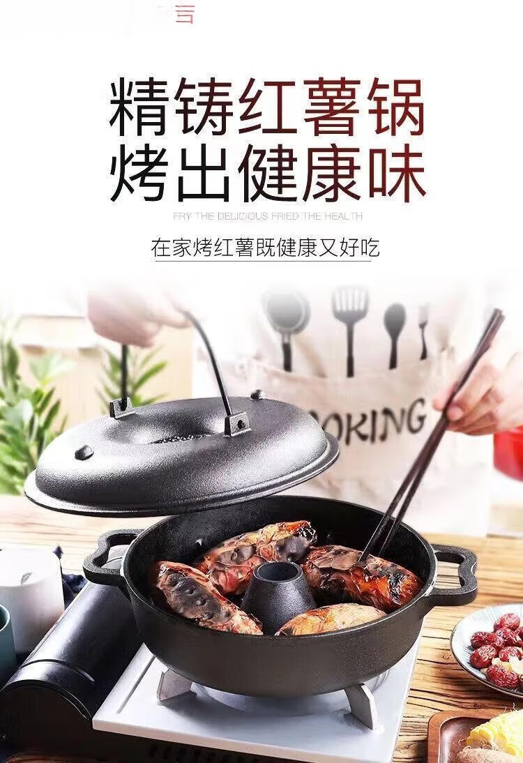 树奢新款烤红薯锅铸铁加厚家用烤山药土豆玉米机地瓜烧烤炉烤红 升级/新款22单锅有盖无工具