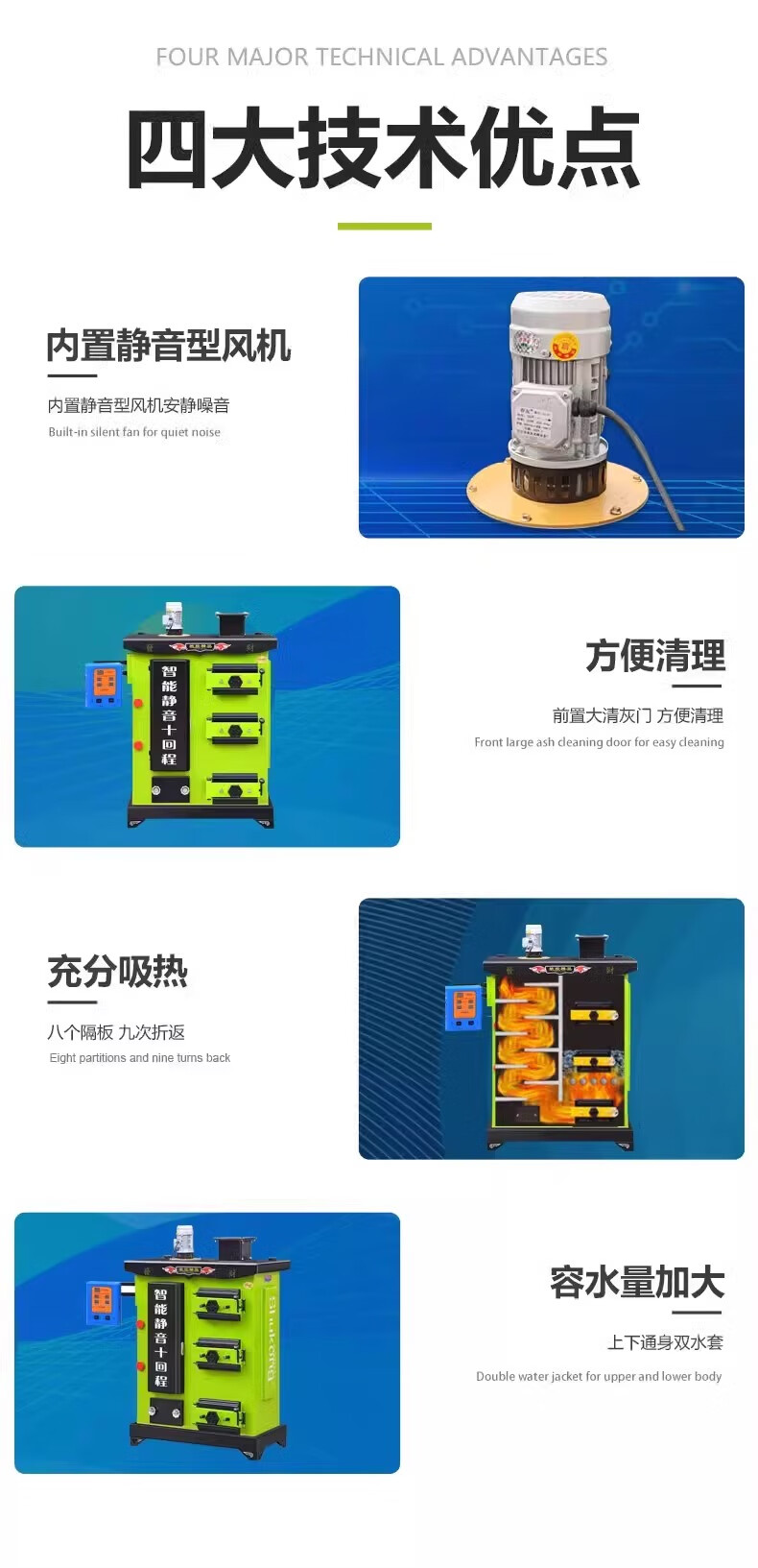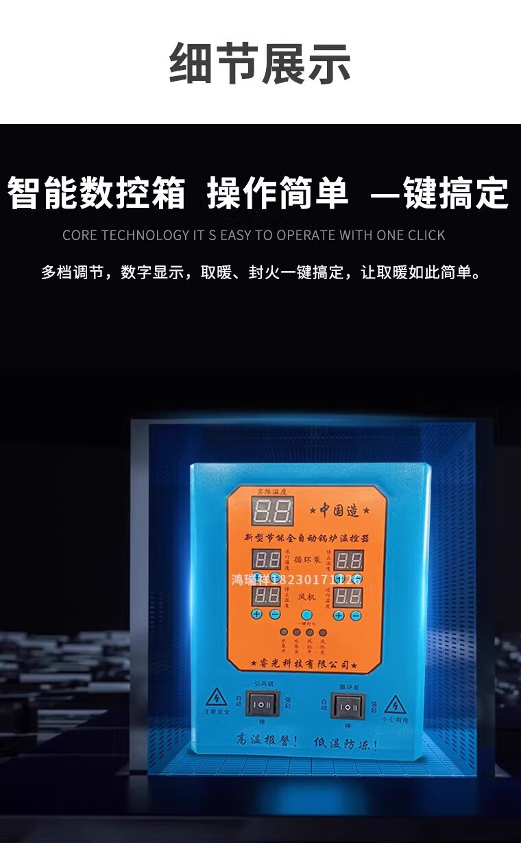 这款十一回程这款智能化控制真是太贴心了,不用人管就行,到了温度就停,温度不够自己启动,节省很多燃料,加煤次数也少,没有浪费的燃料,燃烧很充分,真不错的锅炉,很满意