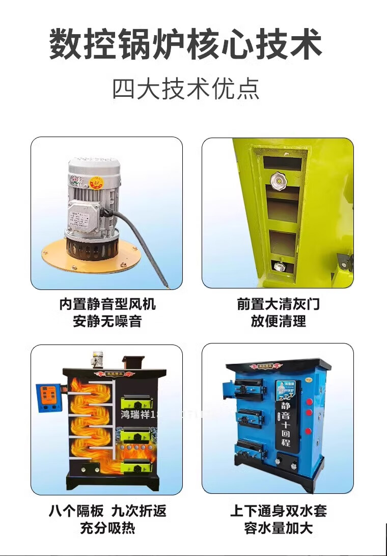 在网上看了好久,最终选择鸿瑞祥品牌的这款静音十一回程反烧,锅炉质量很好,板材厚实,我是放楼梯间底下,选择这款内置风机的正好可以放下,不占地方,声音很小,多回程反烧的就是节省燃料,吸热效果真不错,非常满意,我家邻居也说要买一台呢,好产品值得推荐