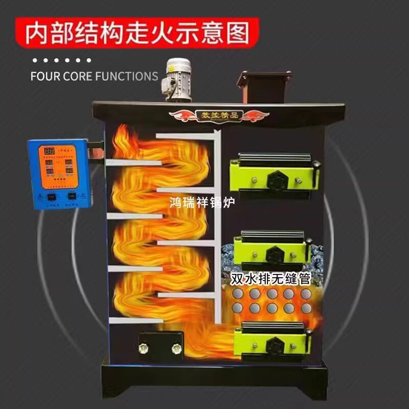 鸿瑞祥数控锅炉反烧节能养殖取暖炉农村地暖燃煤家用全自动加温采暖设备 600平米【11回程加厚双水炉排】