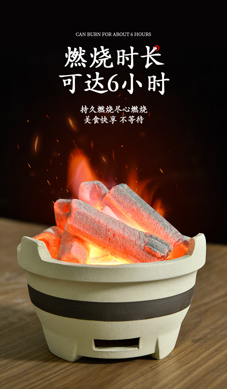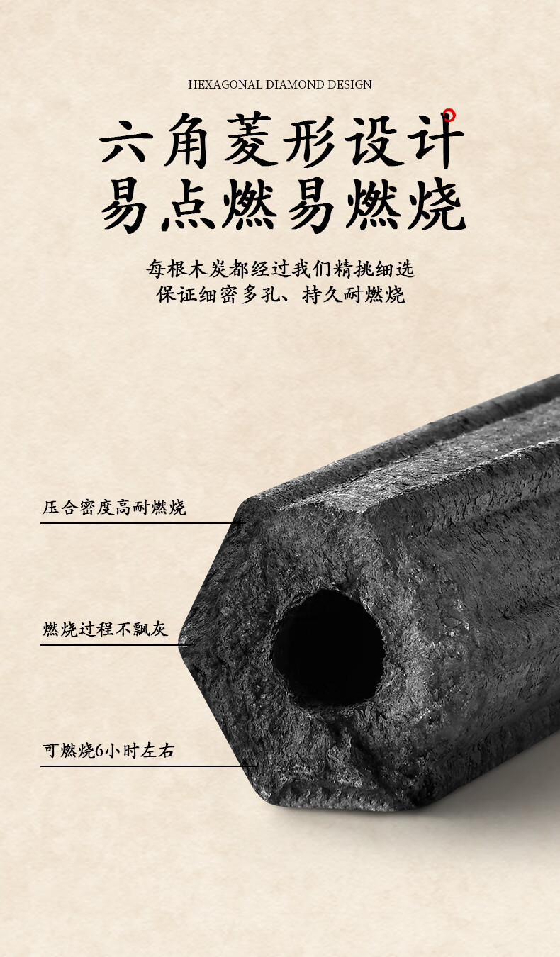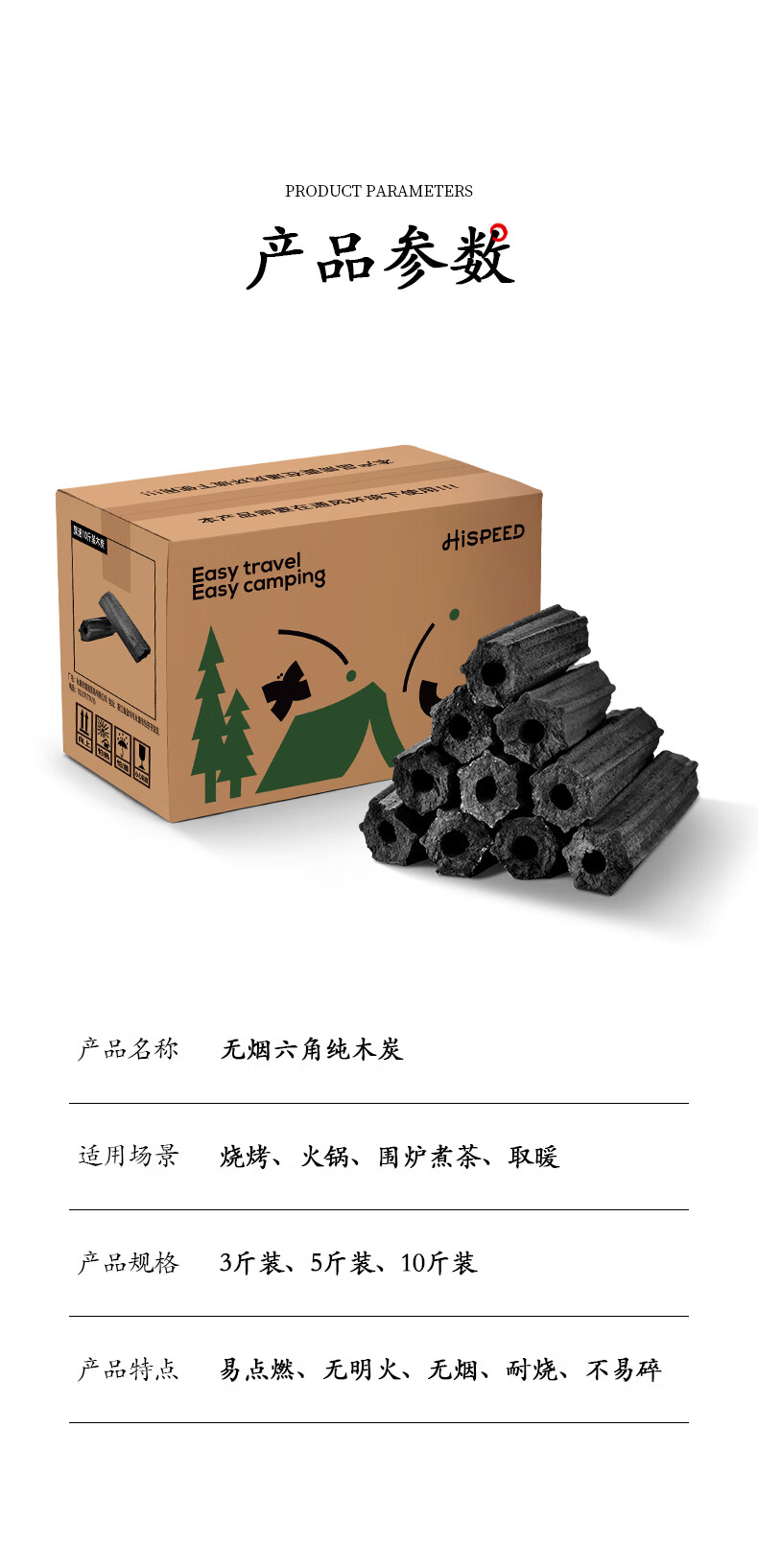 HISPEED旗速烧烤木炭家用无烟烧烤炭 围炉煮茶速燃炭 取暖空心炭 火锅炭 5斤装【易燃耐烧】引燃块+炭夹