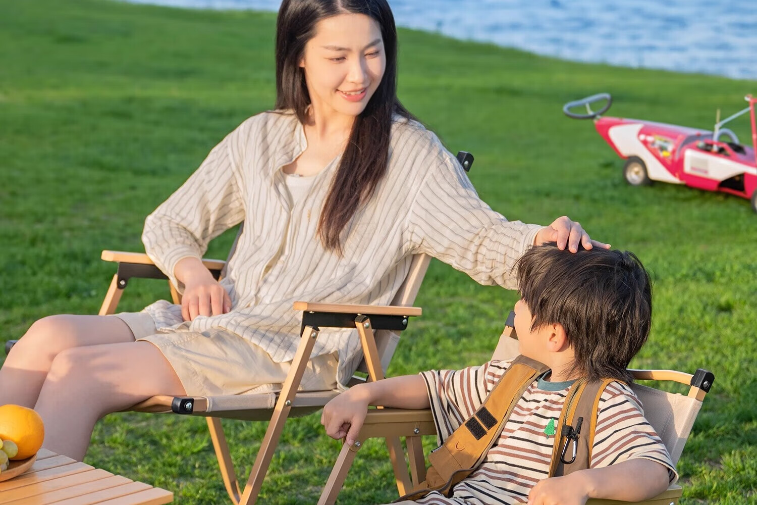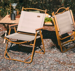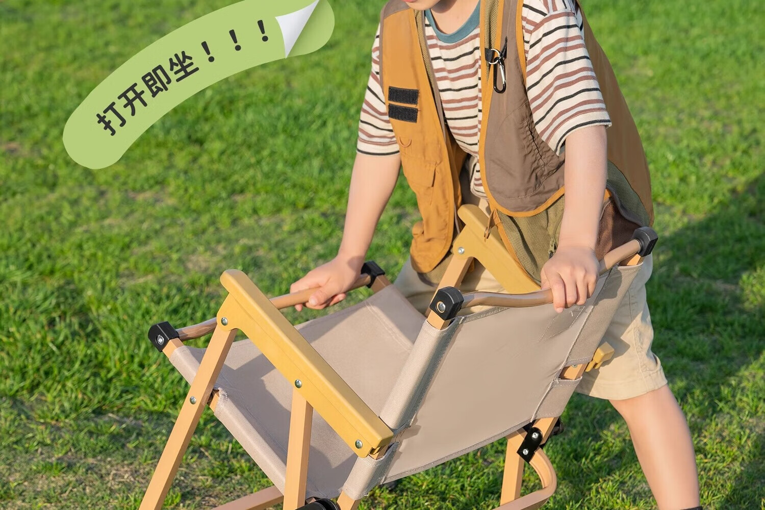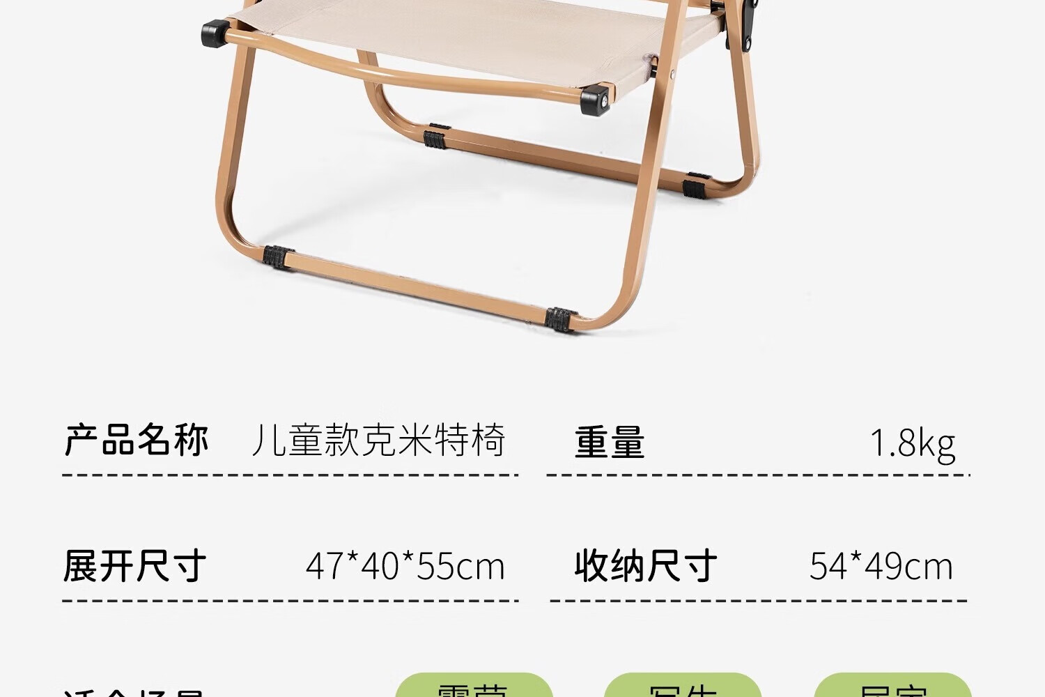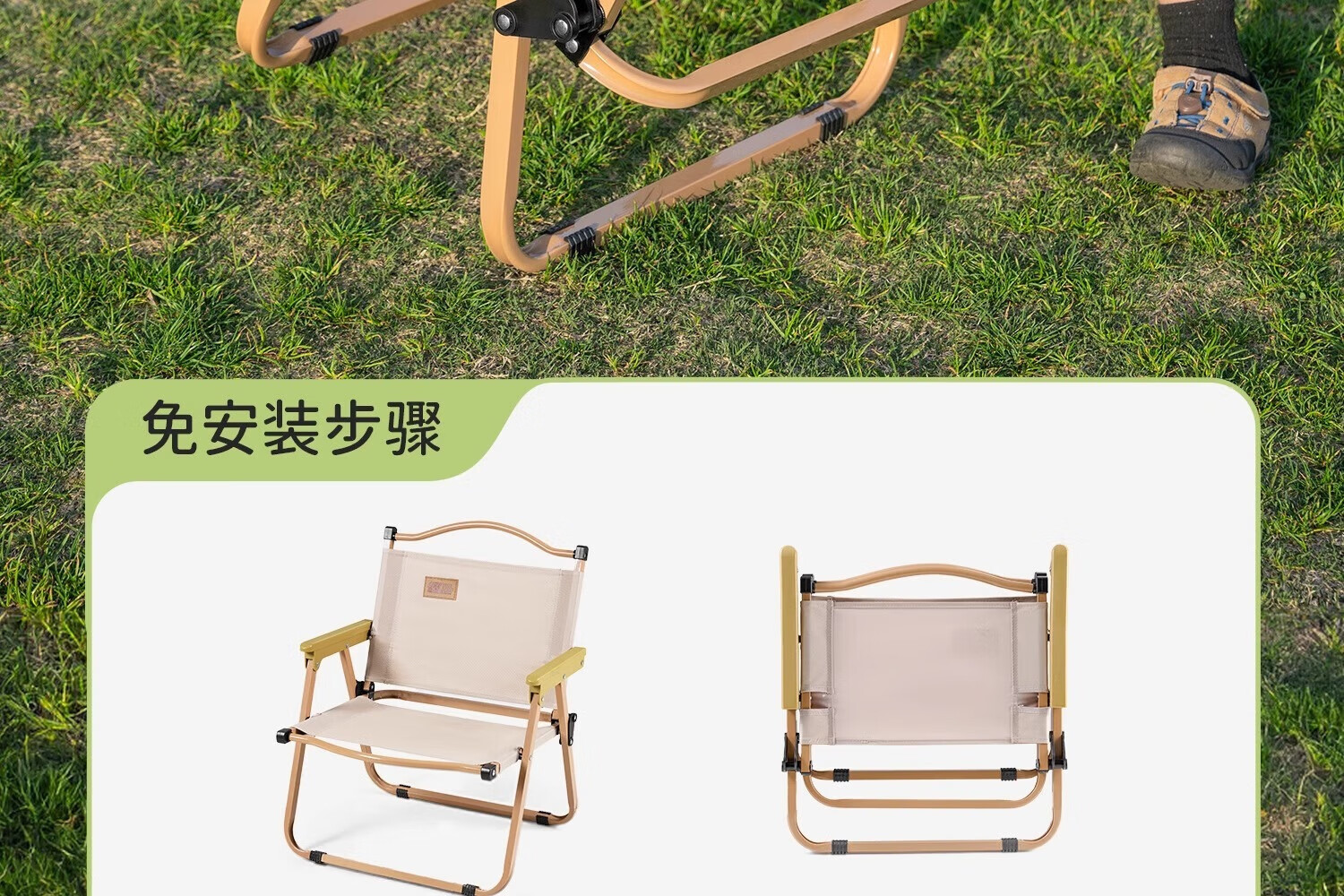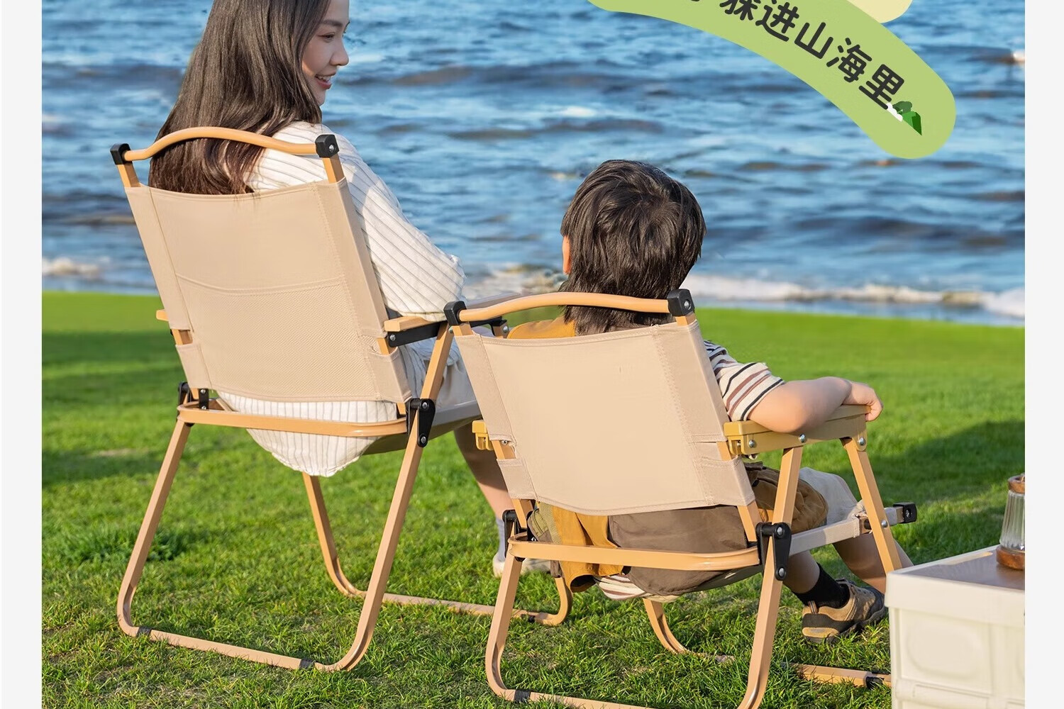 探险者户外折叠椅克米特椅露营折叠椅子月亮椅便携桌子椅钓鱼椅 卡其中号克米特椅(树脂扶手)