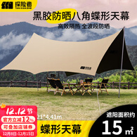 探险者天幕户外黑胶露营遮阳防晒公园聚会野营便携防雨八角蝶形遮阳棚 15㎡-八角黑胶天幕(高效隔热)