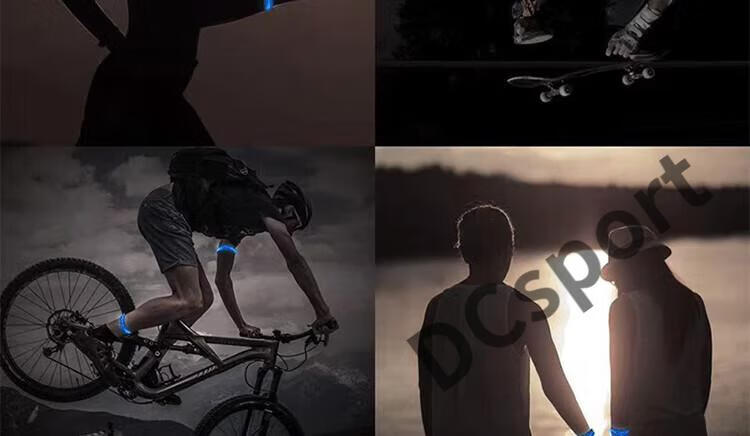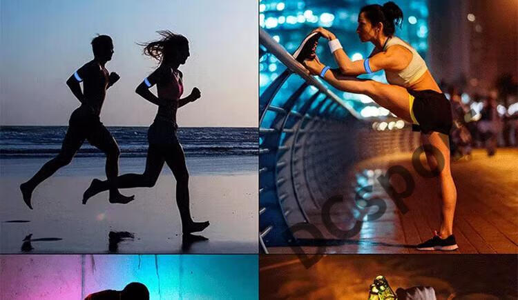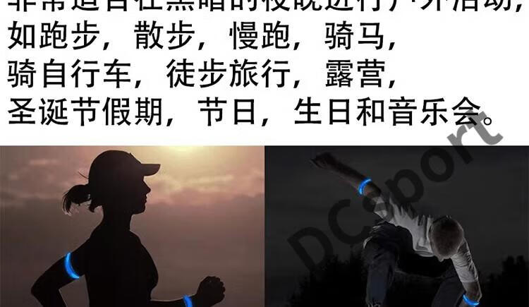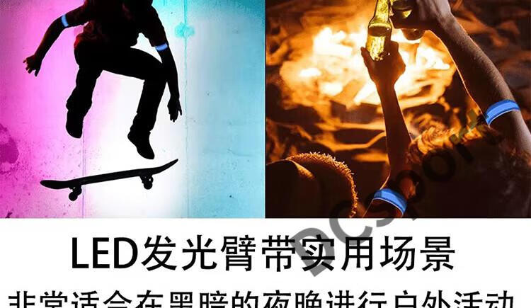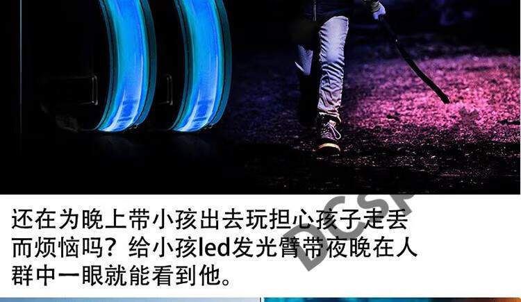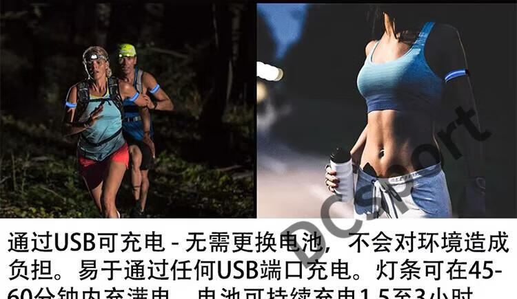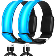 仰朋【松紧调节】发光跑步手臂带手环夜跑骑行安全警示灯绑腿反光装备 蓝色 2条装充电款(配数据线