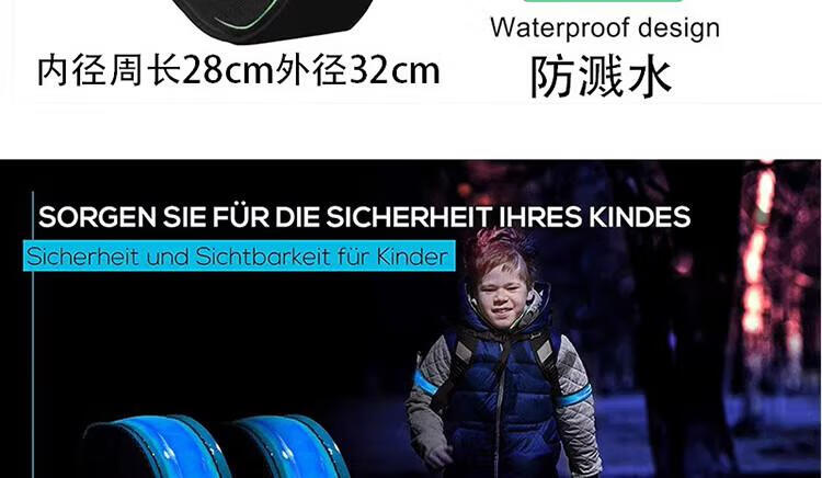 糜岚(MieLanat)夜跑反光带跑步反光带夜跑装备臂灯跑步运动配饰 绿色usb充 电池款+两电池
