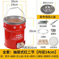 万家蜂窝煤炉烤火取暖炉庭院围炉煮茶烧烤碳炉户外便携炉具炭火炉 红色两节抽屉款炭火炉+压火盖+网+夹+架+杯+垫
