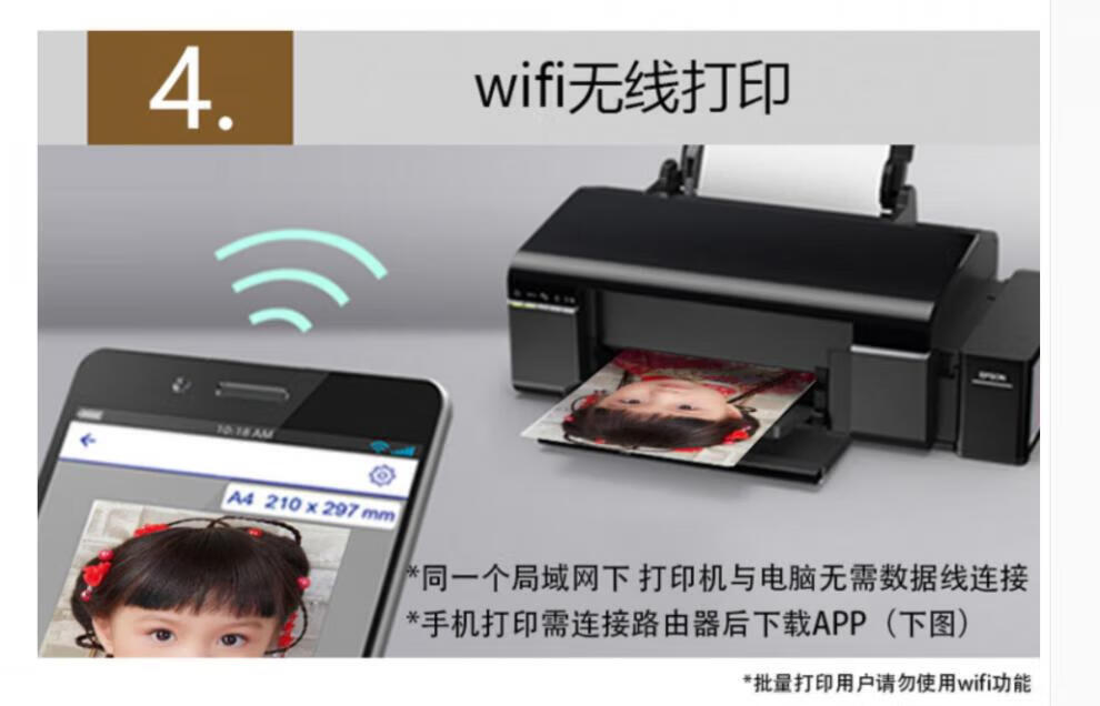 爱普生(EPSON)L805无线6色照片打印机 彩色喷墨打印机连供 全新L805机器不带墨水 官方标配