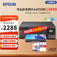 爱普生L8058 彩色墨仓式6色喷墨家用办公打印机 专业照片摄影原装连供打印 仅打印可远程带无线WiFi L8058打印机 多加1套国产056墨水