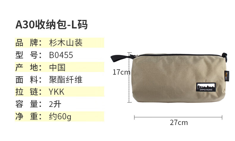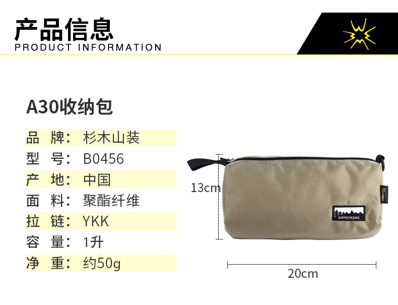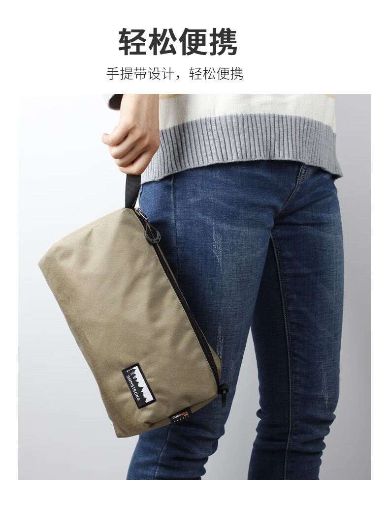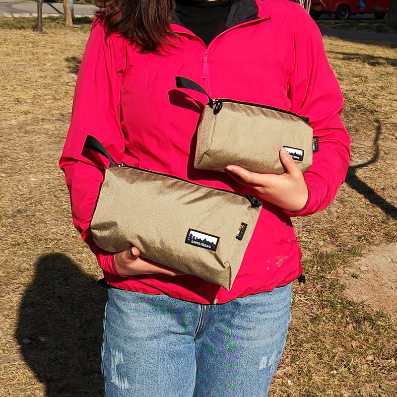 杉木山装洗漱包收纳包杂物收纳袋小袋拉链防水大容量耐磨超轻耐用户外出差 卡其_M号