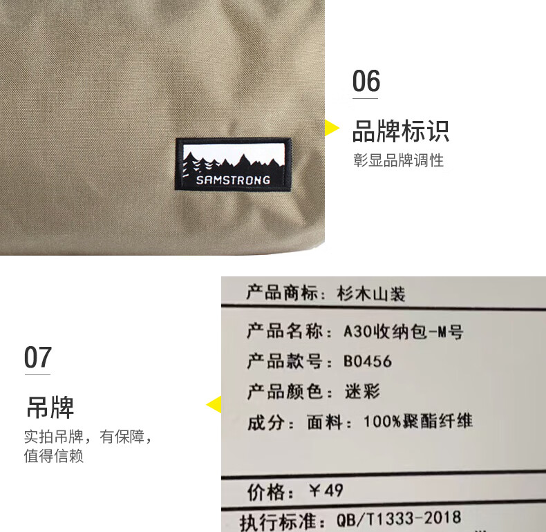 杉木山装 衣服旅游打理袋 整理旅行收纳袋 大容量衣物整理包轻便 黄色 S码