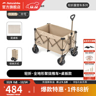 挪客Naturehike露营车四向聚拢收纳户外露营野营折叠推车摆摊车快递车 卡其色 280L 有刹车 -中号+桌板