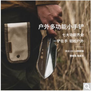 做工挺精细的,钢材质量非常好,手感舒适,一铲多用。拧螺丝,开瓶盖,起钉子,砍树枝,除杂草,挖坑、挖苗,栽苗,还能当尺子。超多的用途非常实用,适宜多种环境应用。
