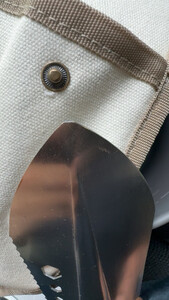 小铲质量不错,挪客做的东确实值得推荐,当时下单还是很犹豫的,大几十块买把几乎用不到的小铲到底值不值得,不过最终还是买来试试如果不是期待的那样就直接退掉好了,结果还是很满意的!这里要给厂家第几个小建议,小铲附赠的帆布包材质做工都非常好,就是那个按扣来了就脱落了我本以为是没有装好,结果开了这个按扣材质惊到我了,我就没见过这么差的,很薄,这台太坑了,心想没必要这么省吧,挪客的产品总体口碑和质量都很好,用这么烂质量的按扣确实不应该,不过我也没打算退,后面我会自己买一个给装上。还有就是最后一个图铲子尖部掉了一小块,不过不影响使用!