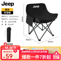 JEEP折叠椅户外露营便携靠背钓鱼椅折叠椅懒人椅家庭休闲月亮椅 月亮椅【黑色】
