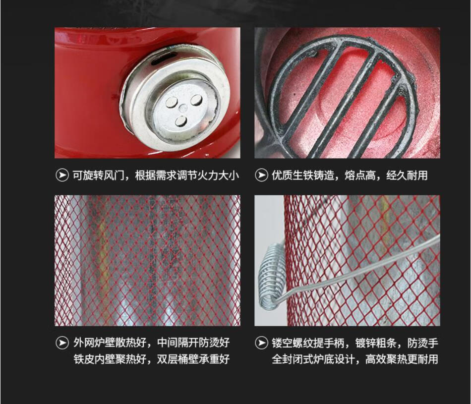 山头林村柴煤两用加厚火炉灶围炉煮茶暖冬烧坏围炉煮茶取暖做饭图片 烧坏 特厚款25CM大号+便携把手+烤网四