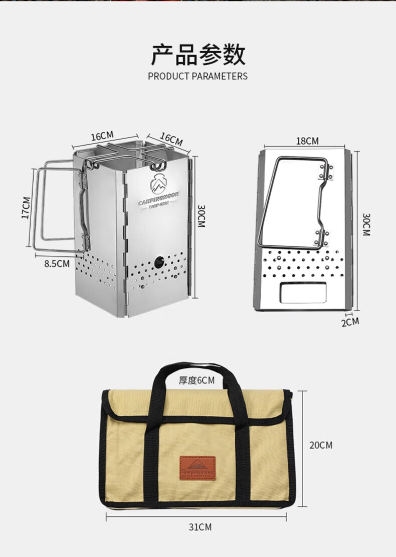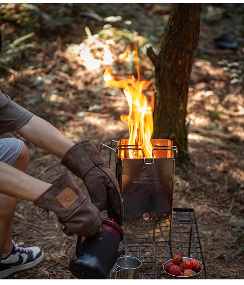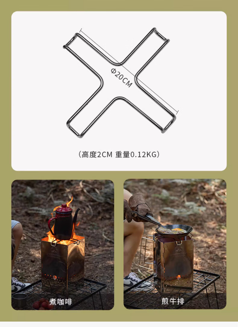Ti artisan/钛工匠户外不锈钢四方木柴炉子酒精炉便携炉灶灶台野外插卡式炉