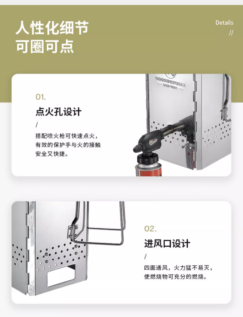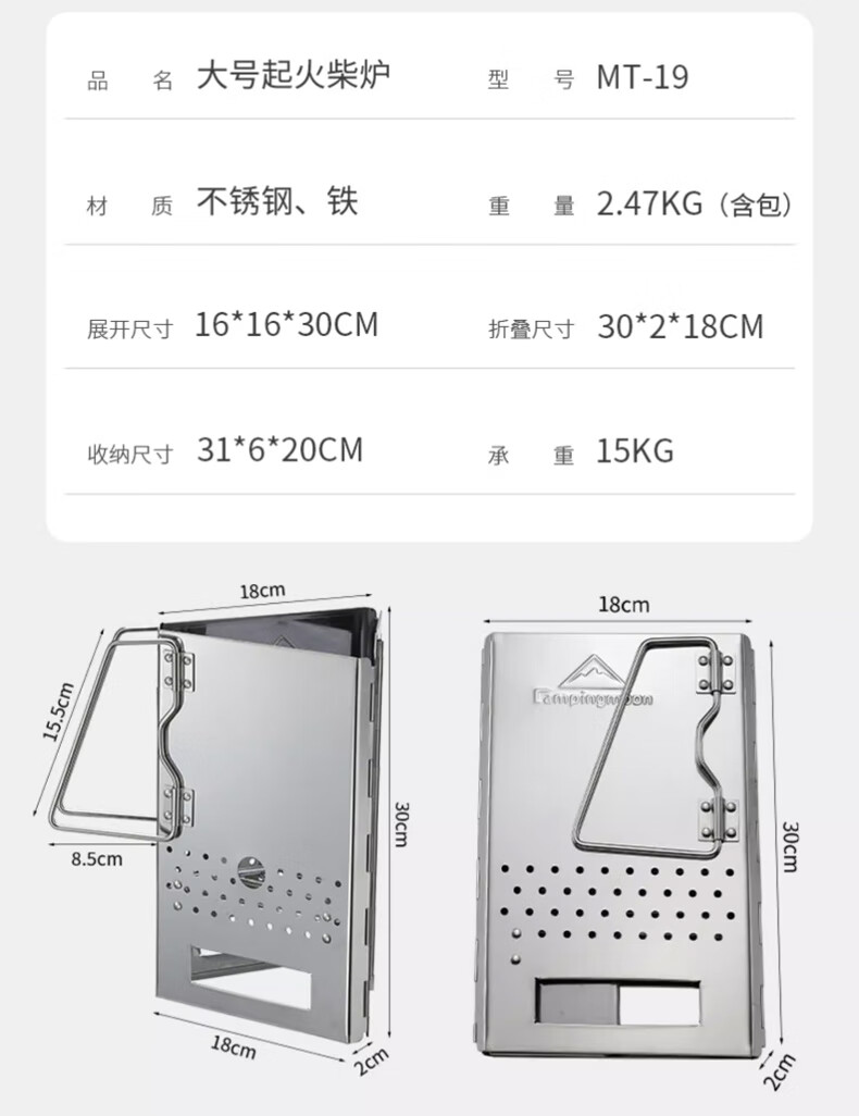 CAMPINGMOON柯曼户外柴火炉柴火灶起火师引火桶不锈钢柴火炉 【MT-17】三角起火师