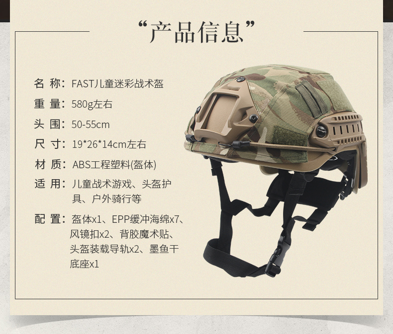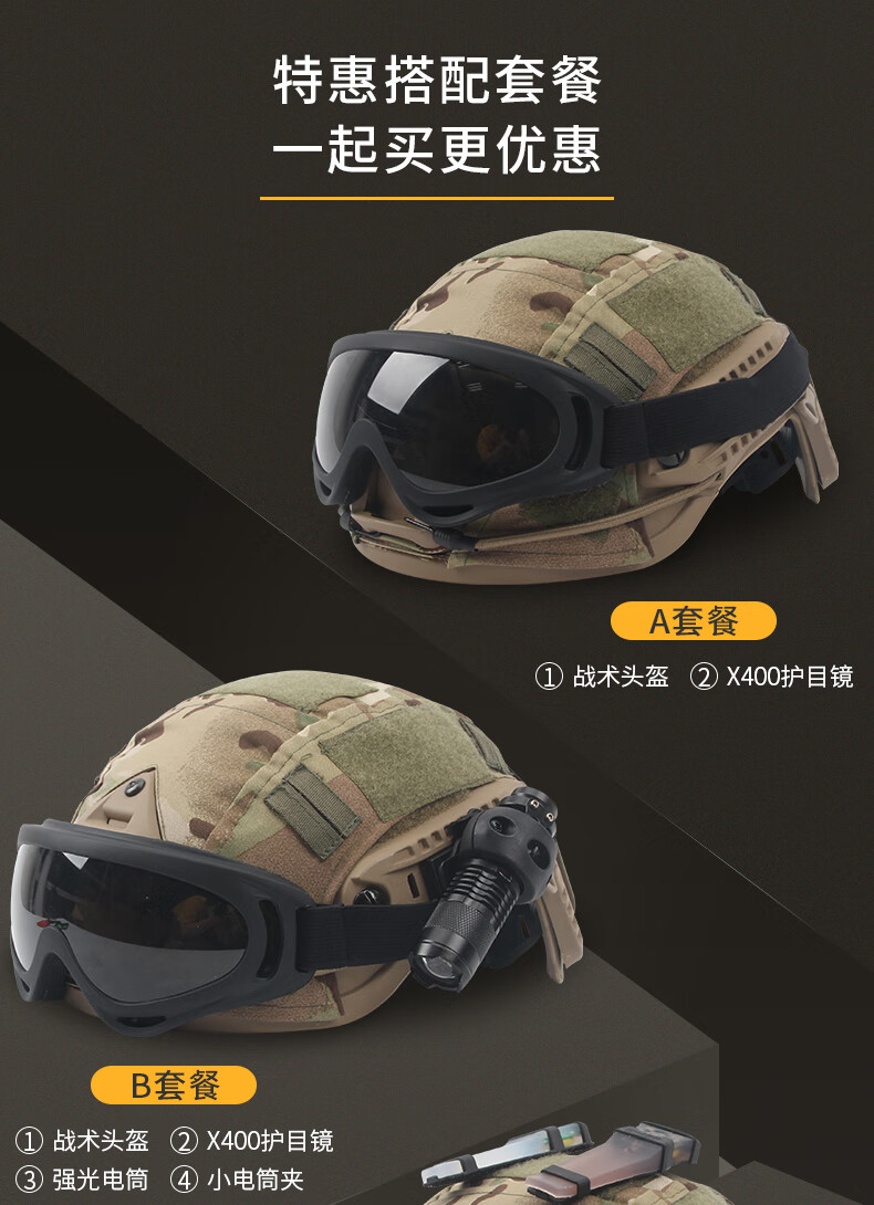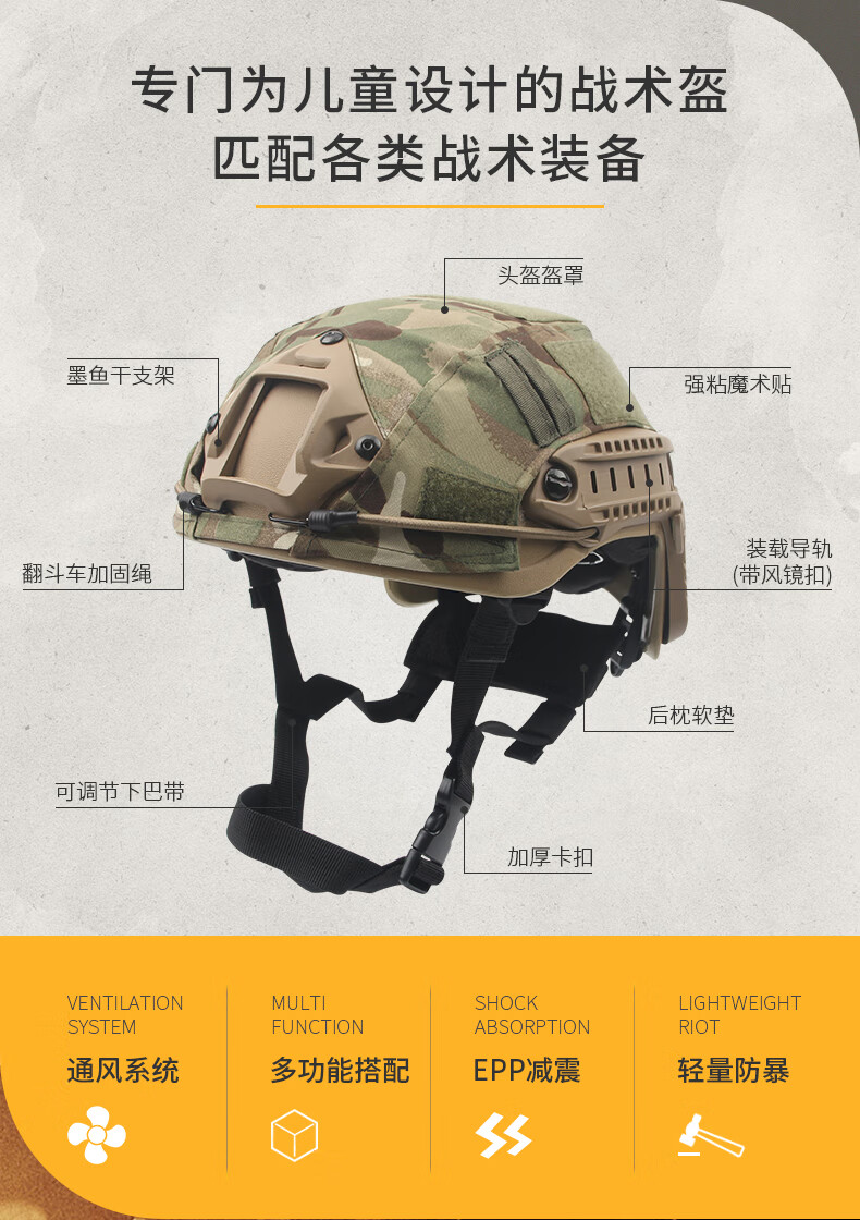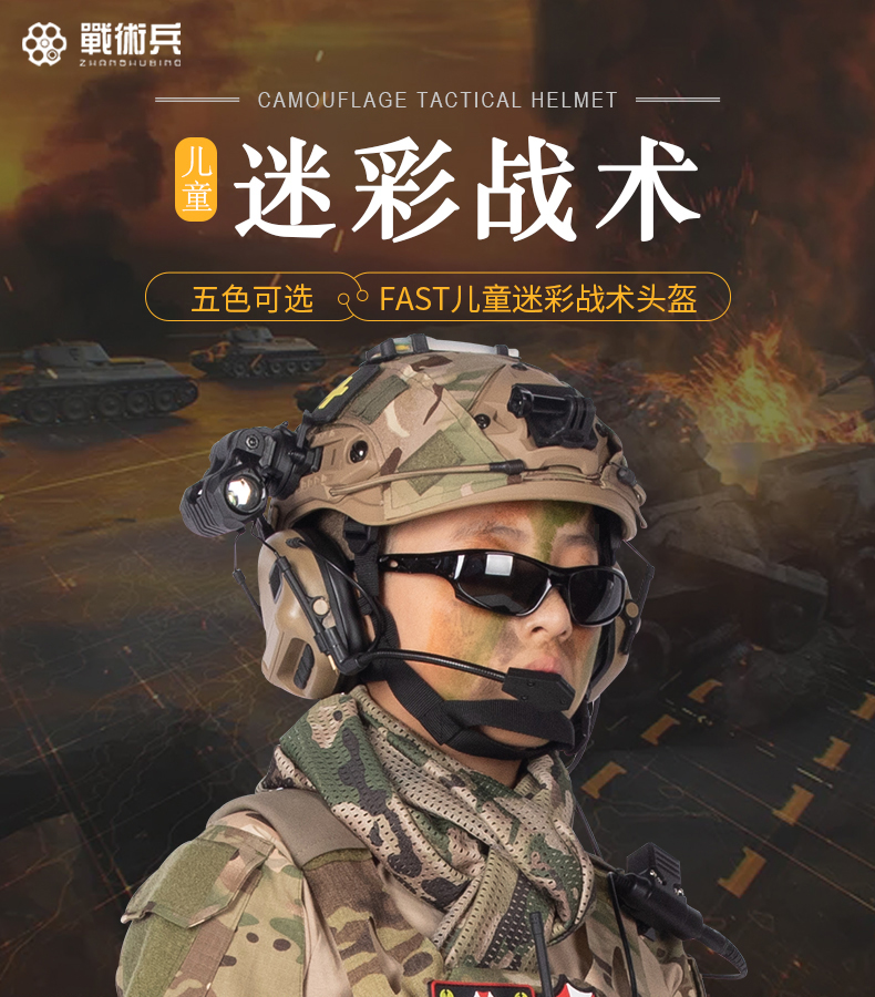 战术兵FAST儿童迷彩战术头盔吃鸡三级头户外骑行防撞小学生自行车安全帽 A套餐(头盔+盔罩+X400护目镜)