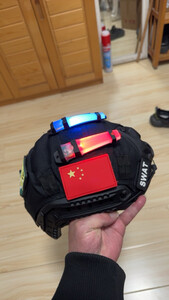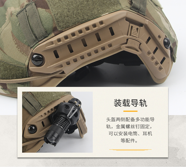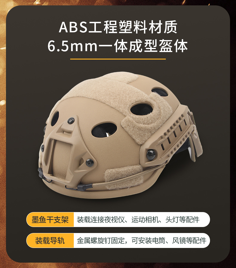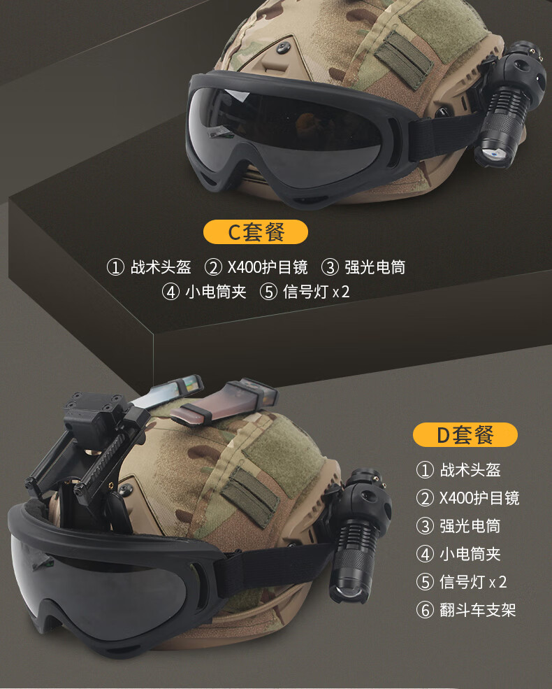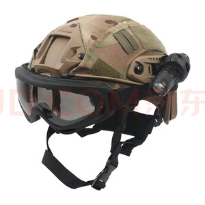 捷天下行动版头盔 轻量化野外CS导轨头盔 军迷头盔米奇战术头盔执勤头盔 黑色头盔+电筒夹+手电+6个贴