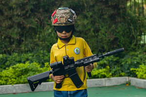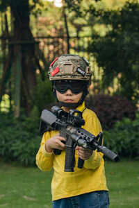 之前都想买一个,孩子很小就没买,应为小孩很喜欢这些军事装备,也应为吃鸡游戏吧🤓看到这款迷彩配色不错,属于全地形的,很帅,刚好六一儿童节了就果断下单了,收到货后看着不错,就是带着有点大了😂摇晃,只能等一二年长大可以带吧,本来是想他骑自行车坐电车可以带带,先放着吧!