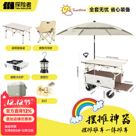 探险者(TAN XIAN ZHE)摆摊推车一体摊车折叠桌天幕伞摆摊神器餐车摆摊四轮车地摊车 一体摆摊万能小推车【遮阳防雨】
