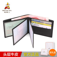 七匹狼 男士真牛皮驾驶证包男女多功能卡位驾驶头层牛皮套驾驶本证件夹 黑色
