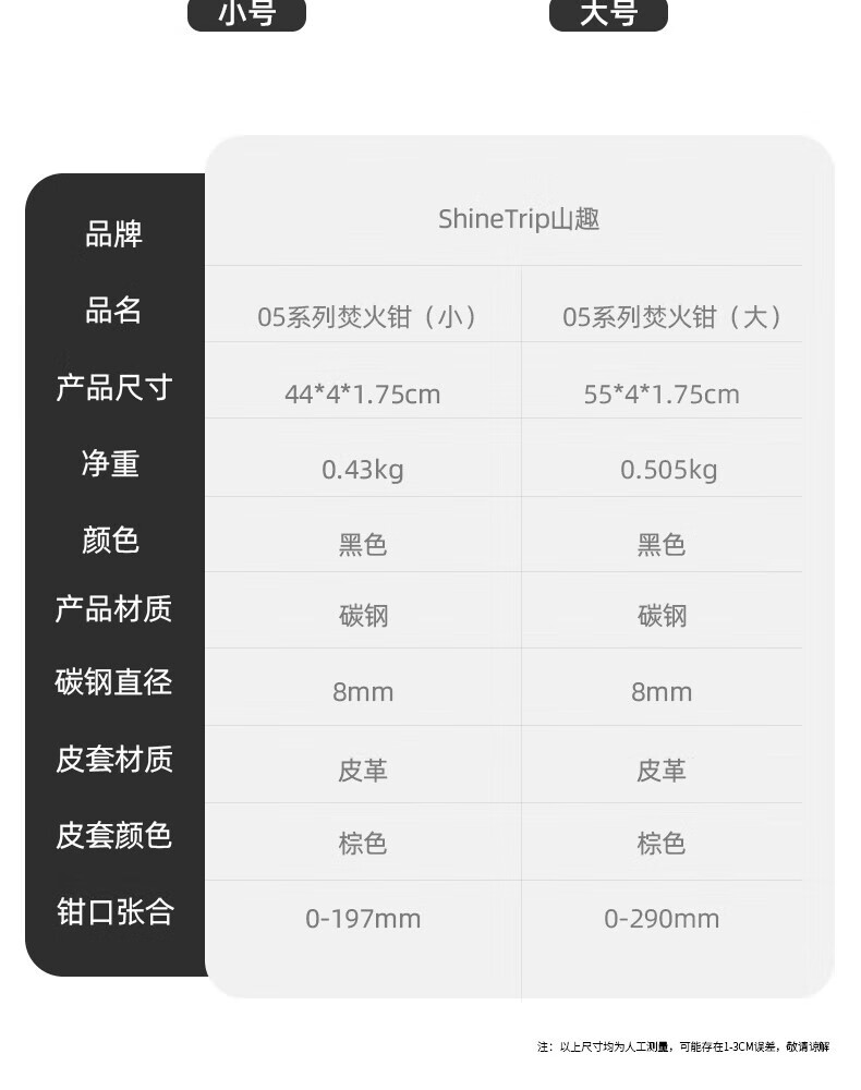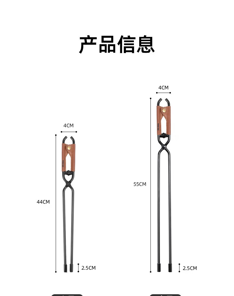 山趣(ShineTrip)山趣户外焚火钳碳夹子烧烤木炭夹子钳烤火露营炭火钳生火送皮套 55cm
