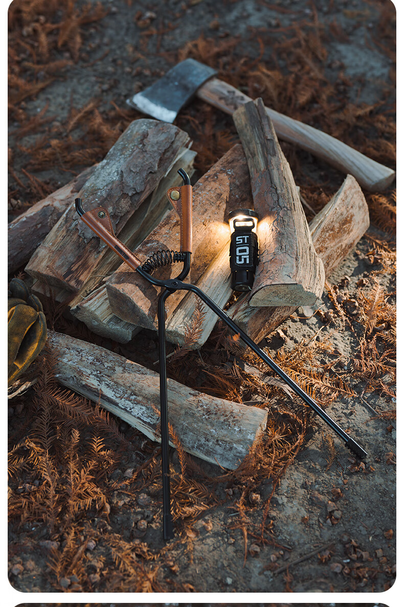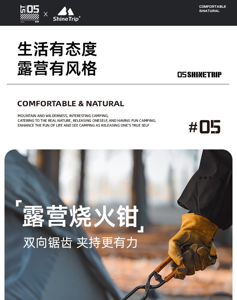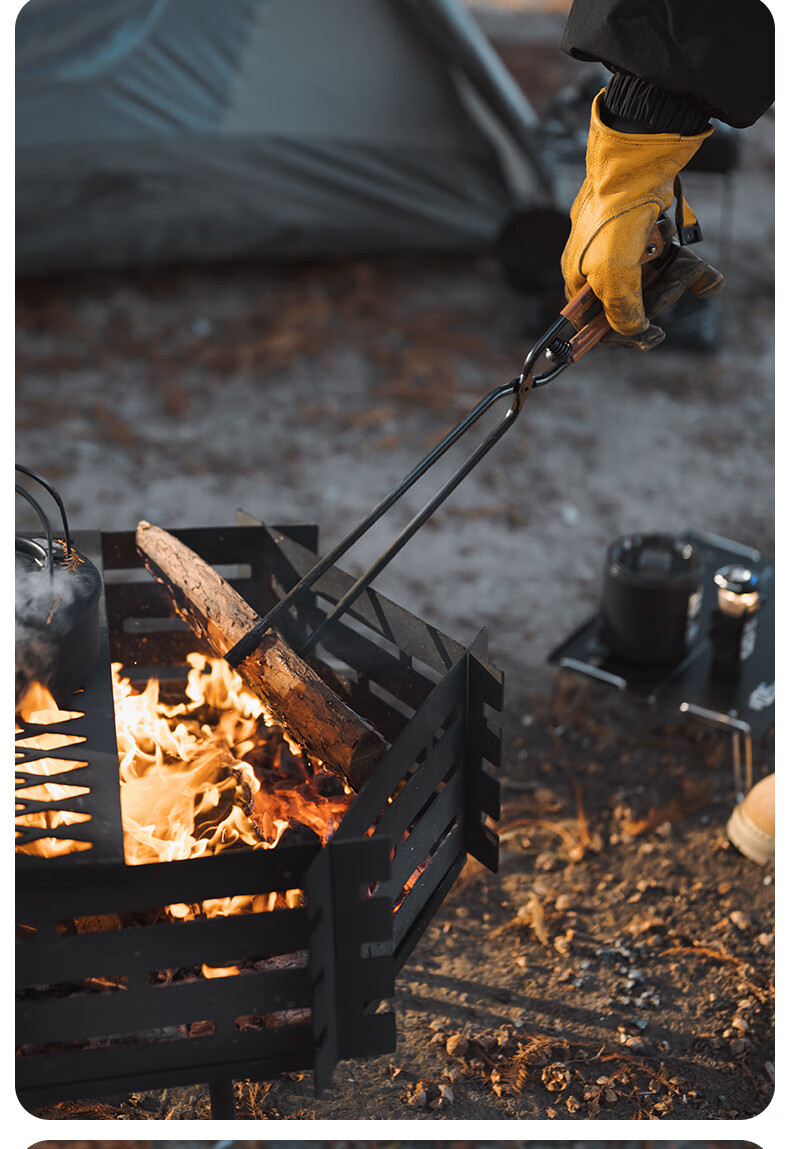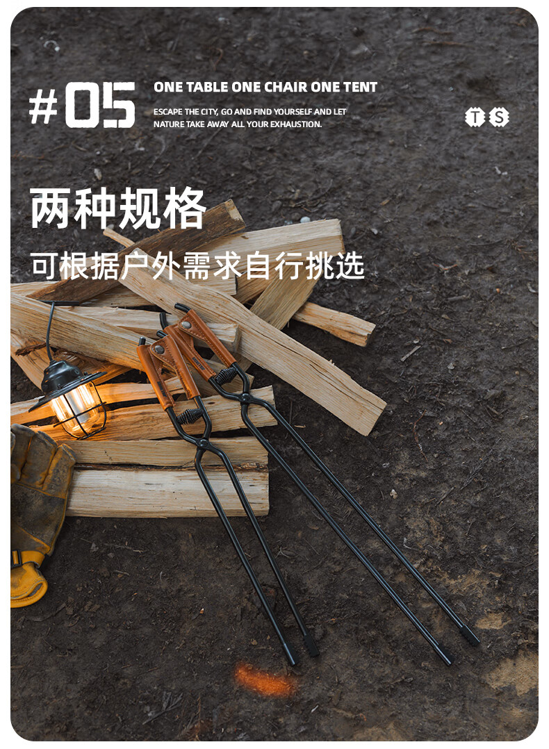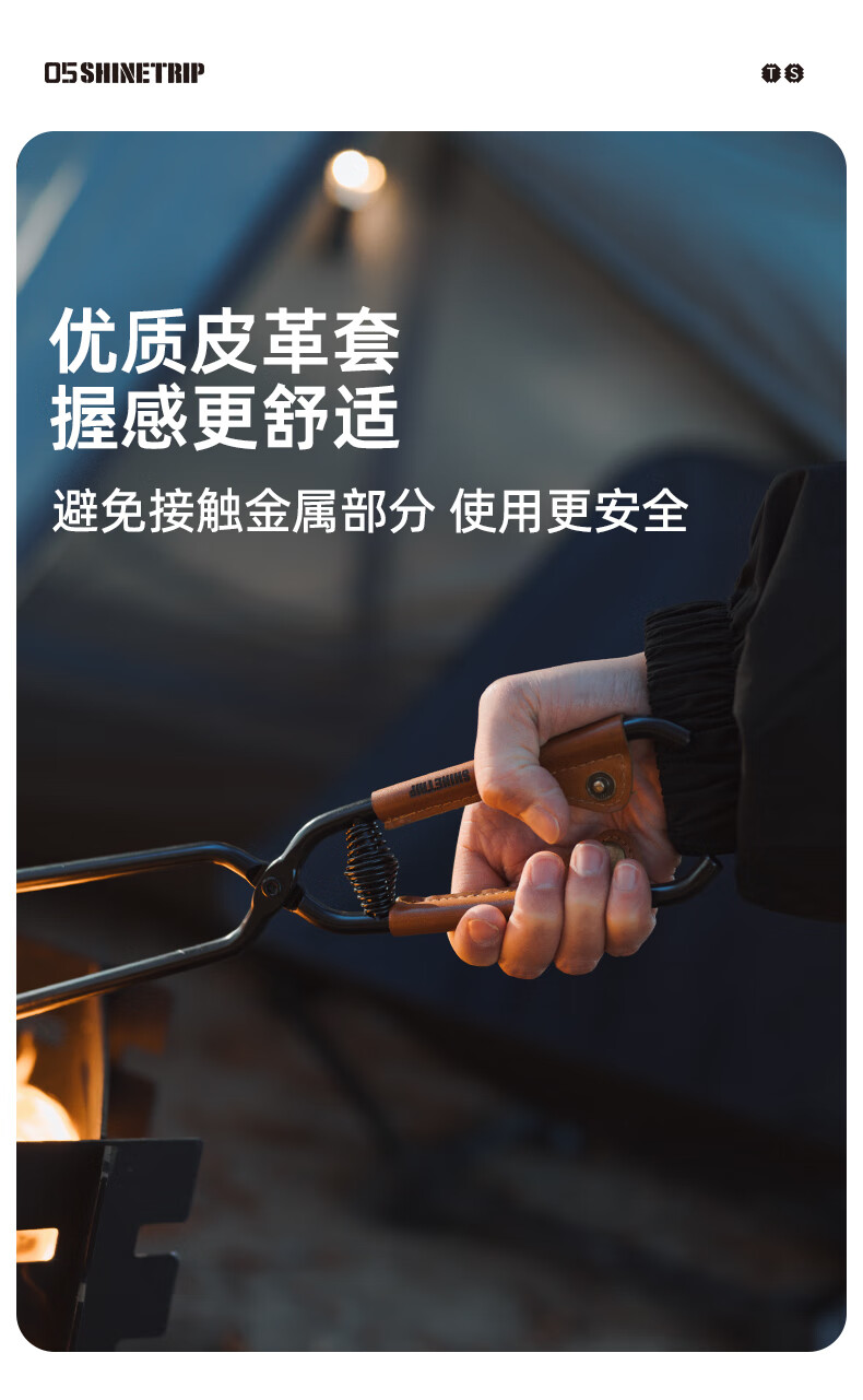 山趣(ShineTrip)户外05系焚火钳露营野餐烧火钳皮套加粗钢管防腐耐用耐高温钳 焚火钳套装大号(长55cm)