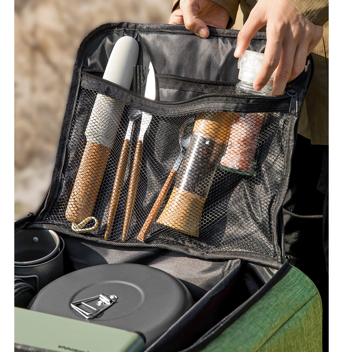 北山狼 户外野餐包 露营炊具烧烤便携大容量防水收纳包 云杉绿