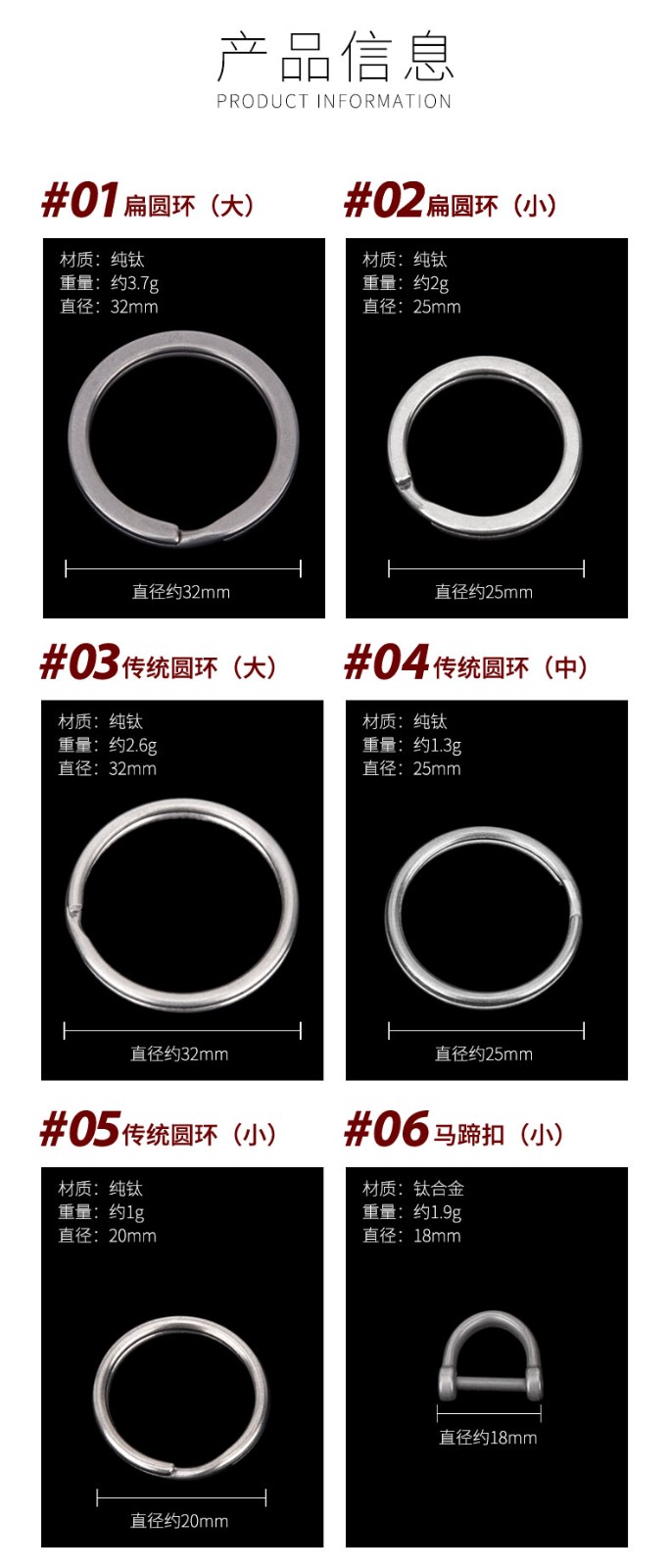 钛途(TITO TITANIUM) 纯钛钛合金钥匙扣户外旅行EDC野营郊游挂扣具汽车 纯钛钥匙圈-小