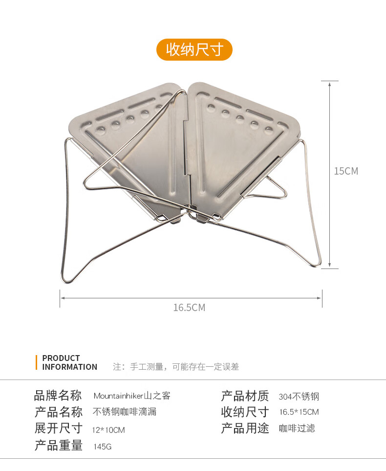 山之客(MOUNTHIKER)户外露营家用漏斗折叠不锈钢咖啡滴漏野炊 不锈钢咖啡滴漏