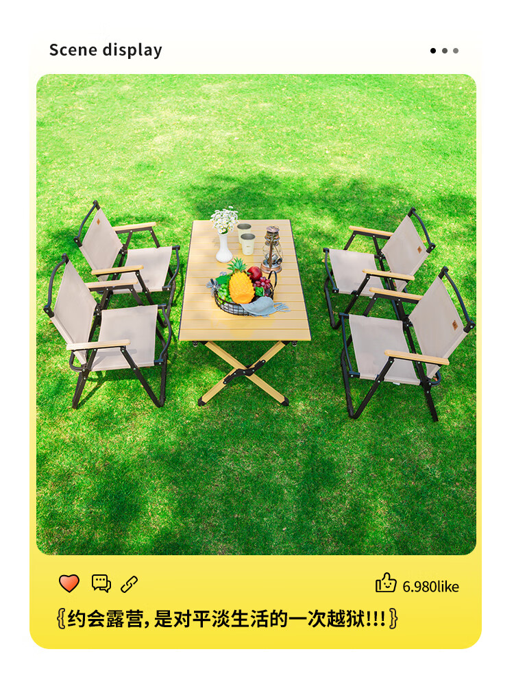 ✨这款折叠桌真的超实用!👏材质手感很棒,木纹清晰自然,摸起来很舒服~📦收纳不占地方,折叠后小巧轻便,放车里完全没问题🚗。户外露营、野餐都超合适,展开稳当又快捷⚡。整体体验满分,推荐入手!🌟🌟