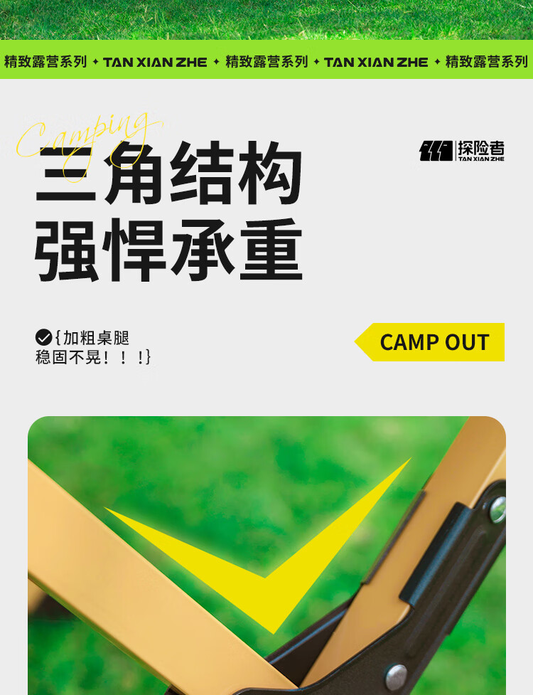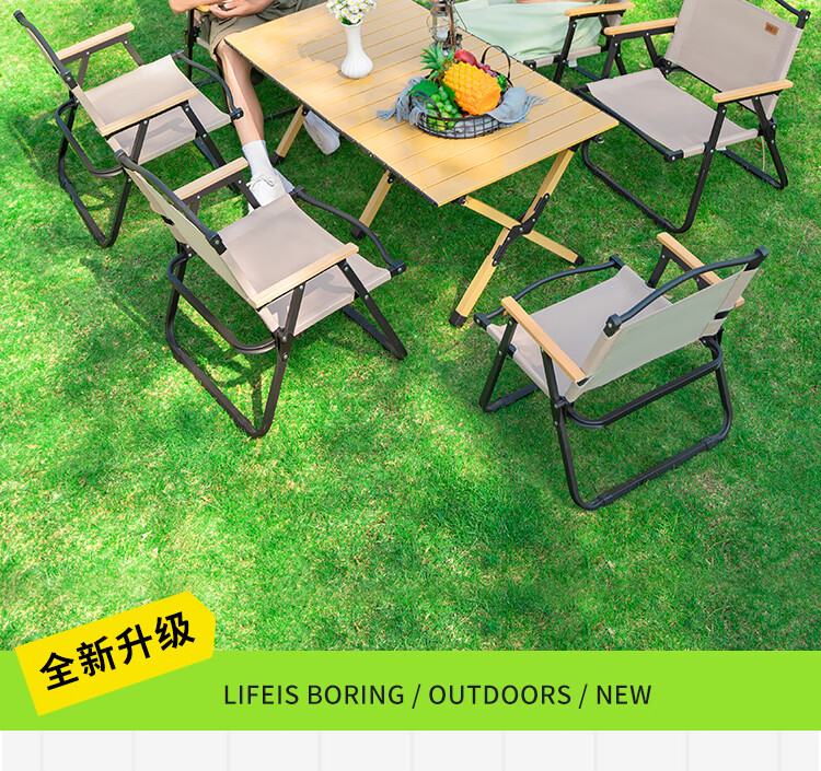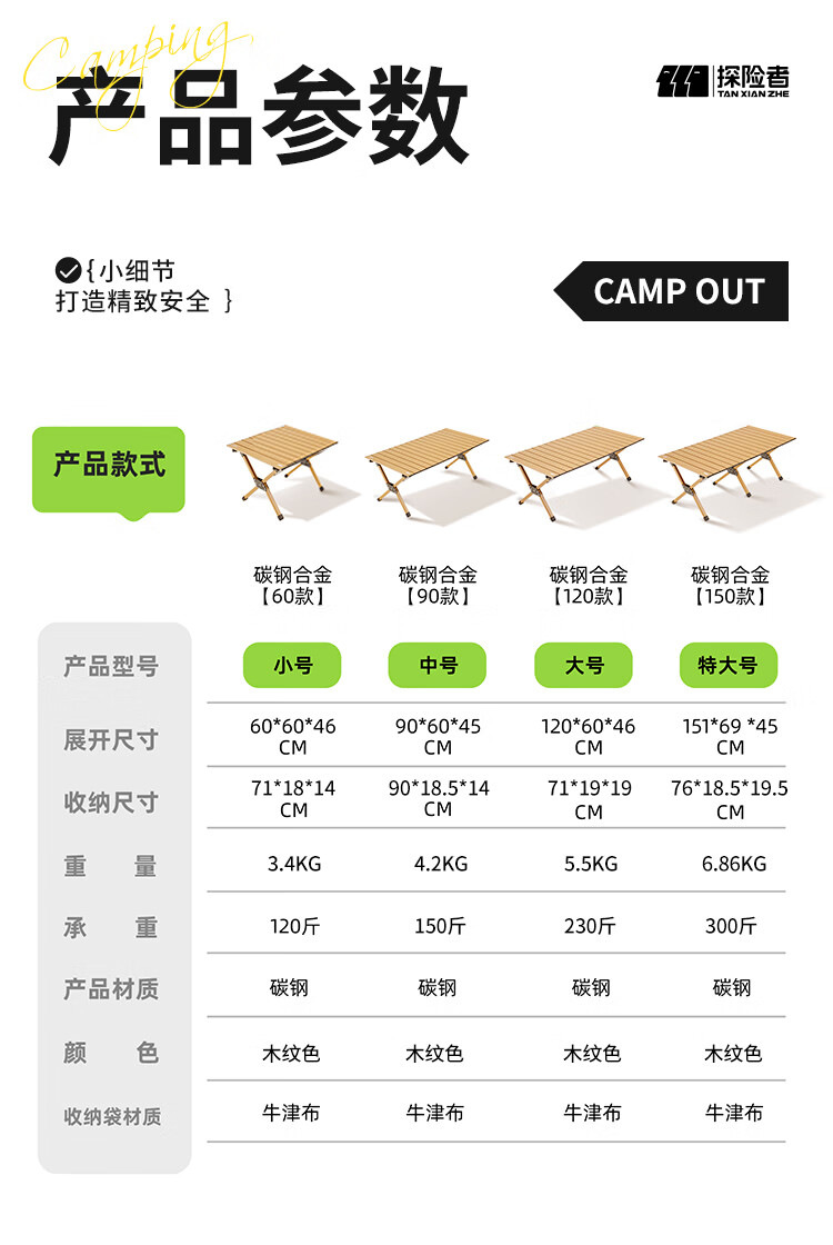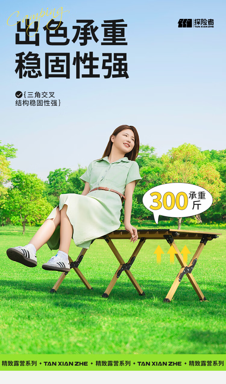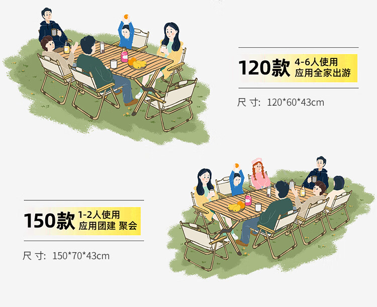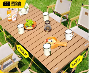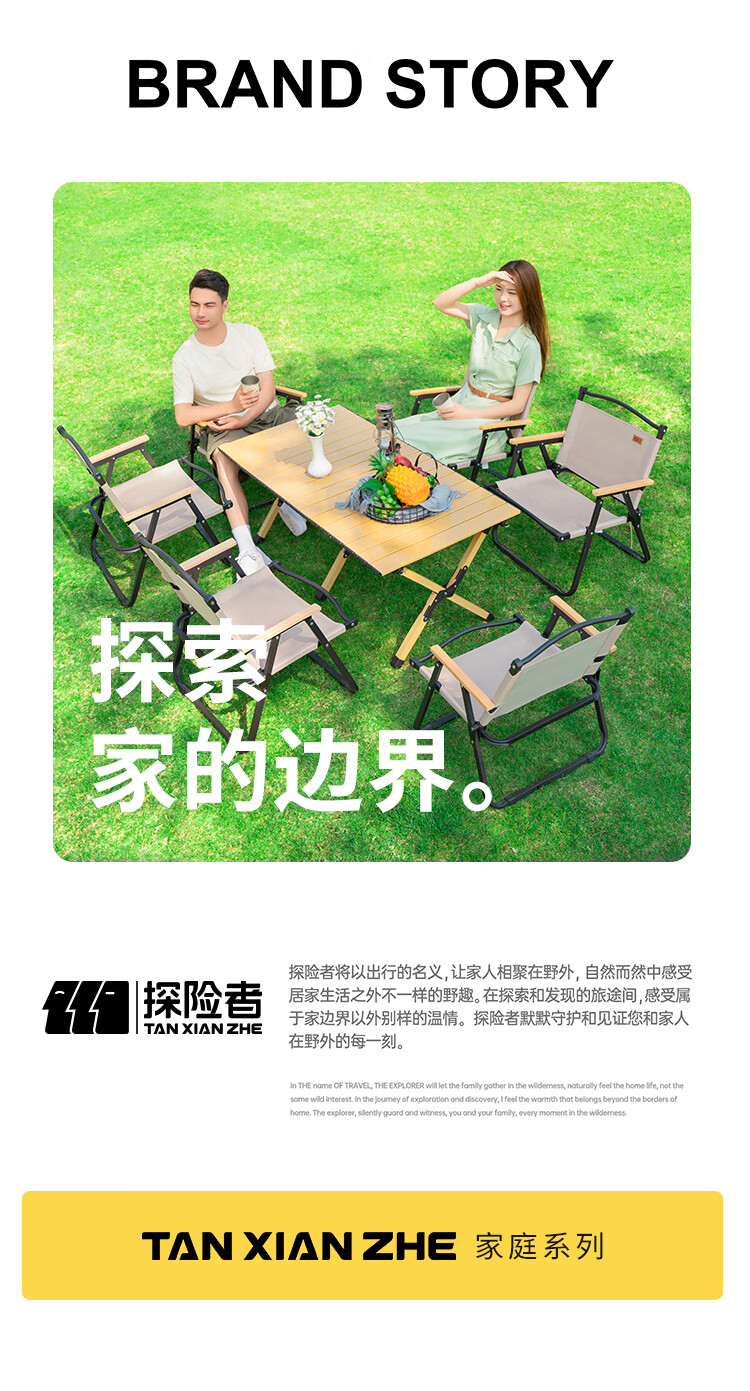 探险者户外桌椅蛋卷桌露营折叠桌椅全套便携月亮椅野餐一桌四椅户外套装 3-8人加长款--150CM胡桃蛋卷桌(送收纳包)