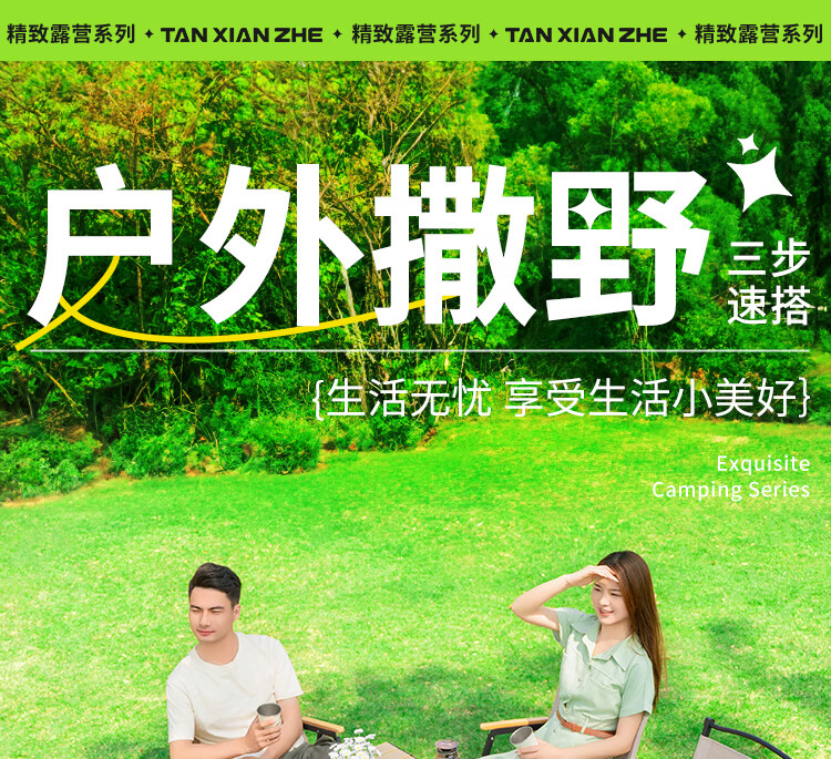 探险者(TAN XIAN ZHE)露营车儿童可躺户外露营推车营地车野营车可折叠桌板野餐车买菜车 曜石黑【静音万向轮+全钢车架】