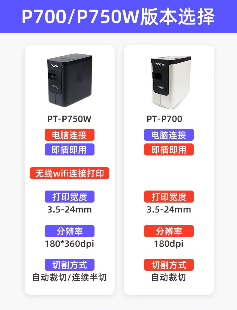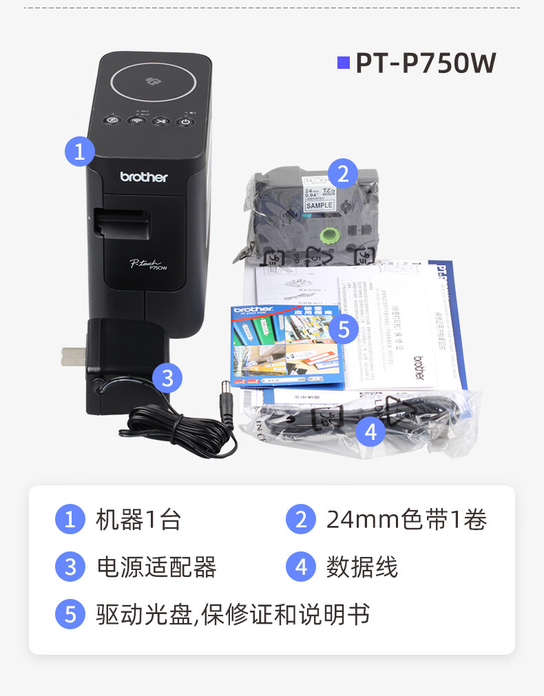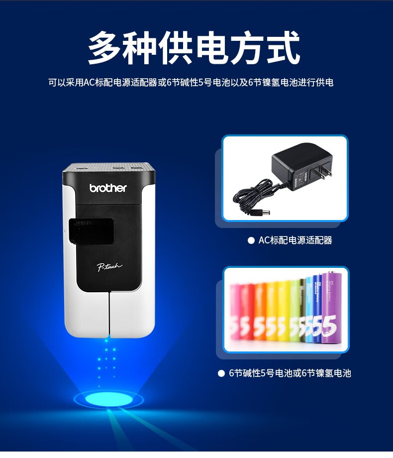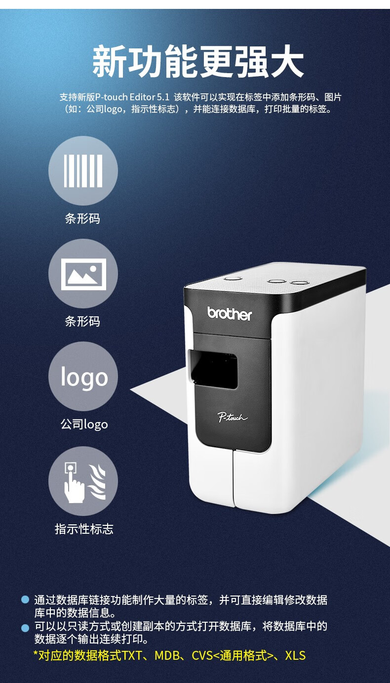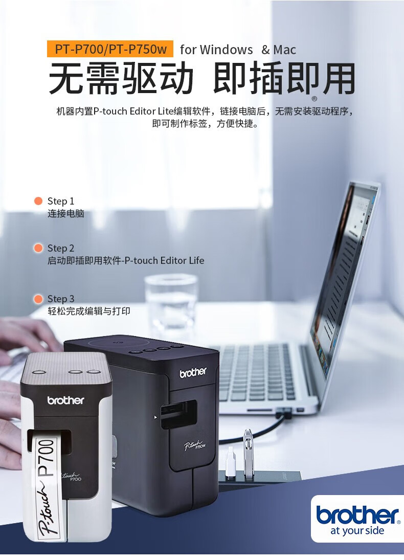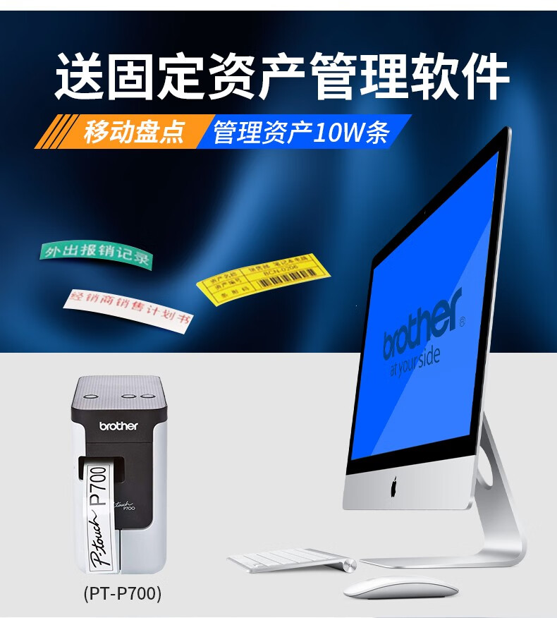 兄弟标签机PT-P700连电脑桌面固定资产标签打印机通信线缆打签机 官方标配+5卷色带