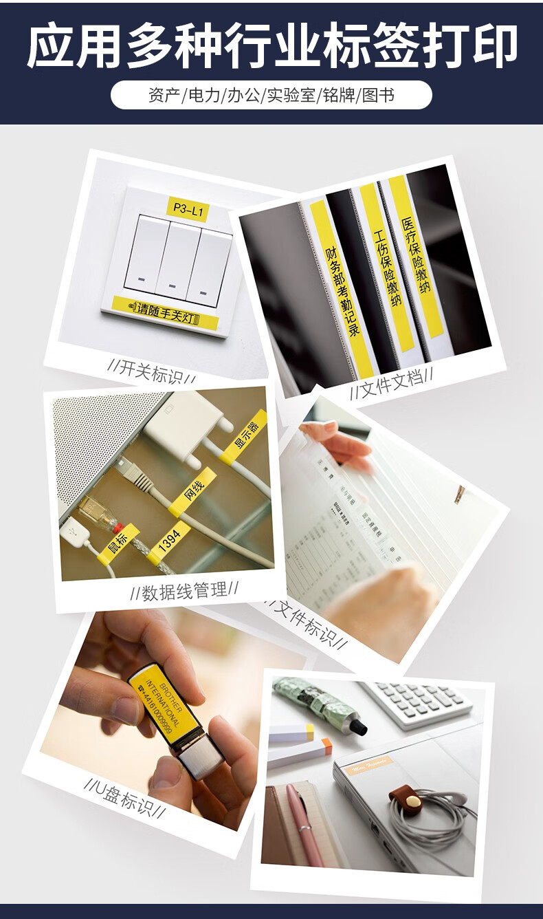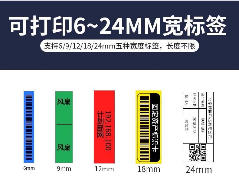 很小巧的标签打印机,功能非常实用,配套的软件可以打出很多种标签样式,自带一盒白底黑字24mm的胶带,原版胶带非常耐用,以前贴在机器上的十来年了都不掉。慎用兼容胶带时间长会变粉。