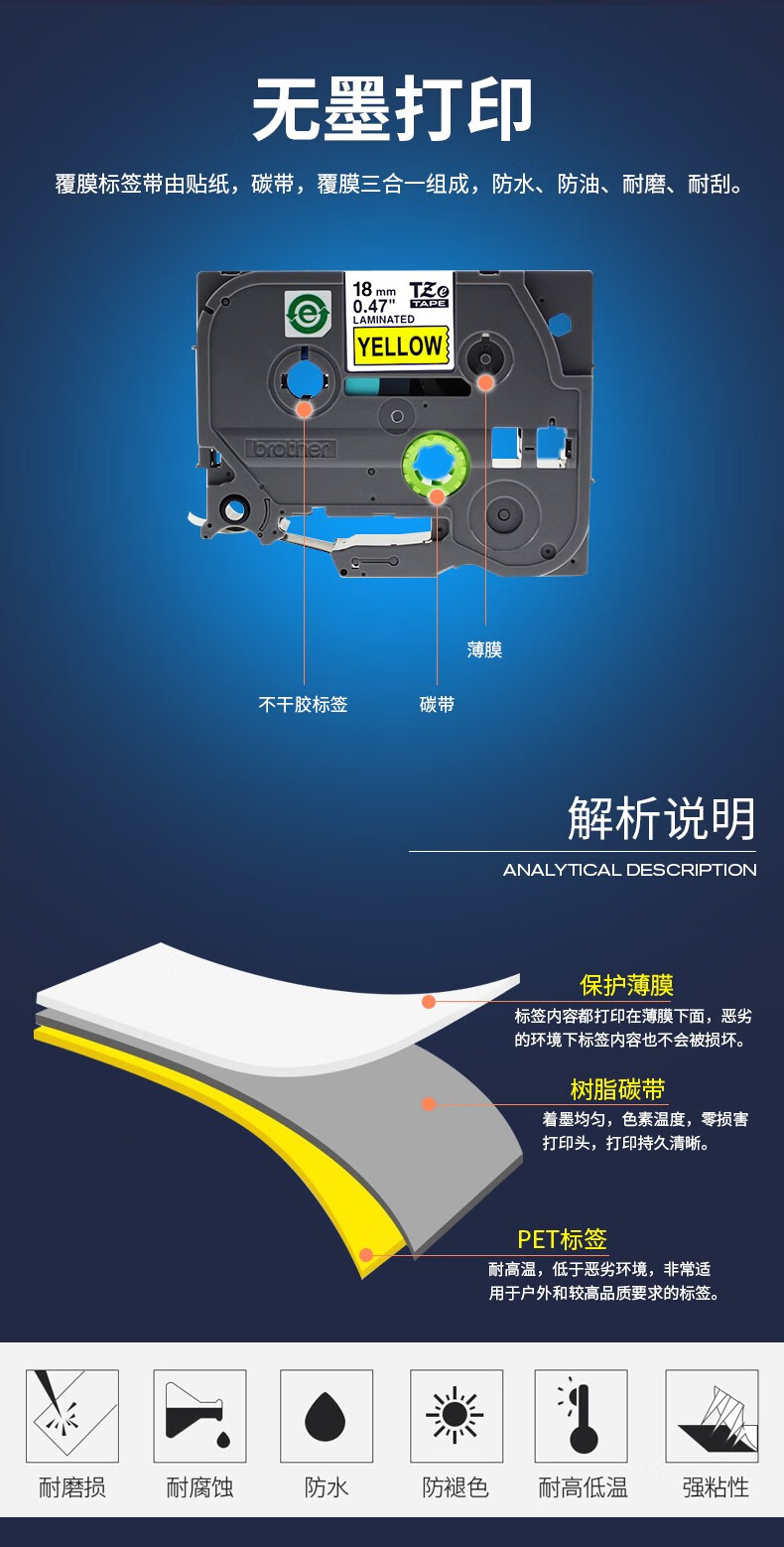 兄弟全新保正PT-P700标签机PT-P750W固定资产员工胸牌线缆标签打印机 兄弟原装色带12mm颜色备注