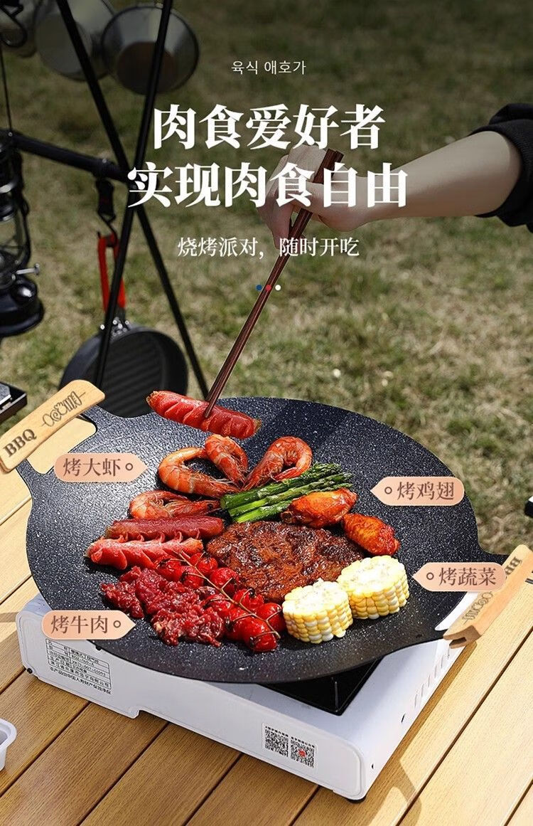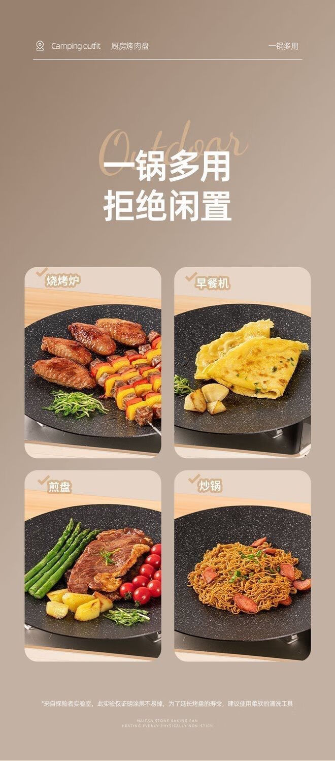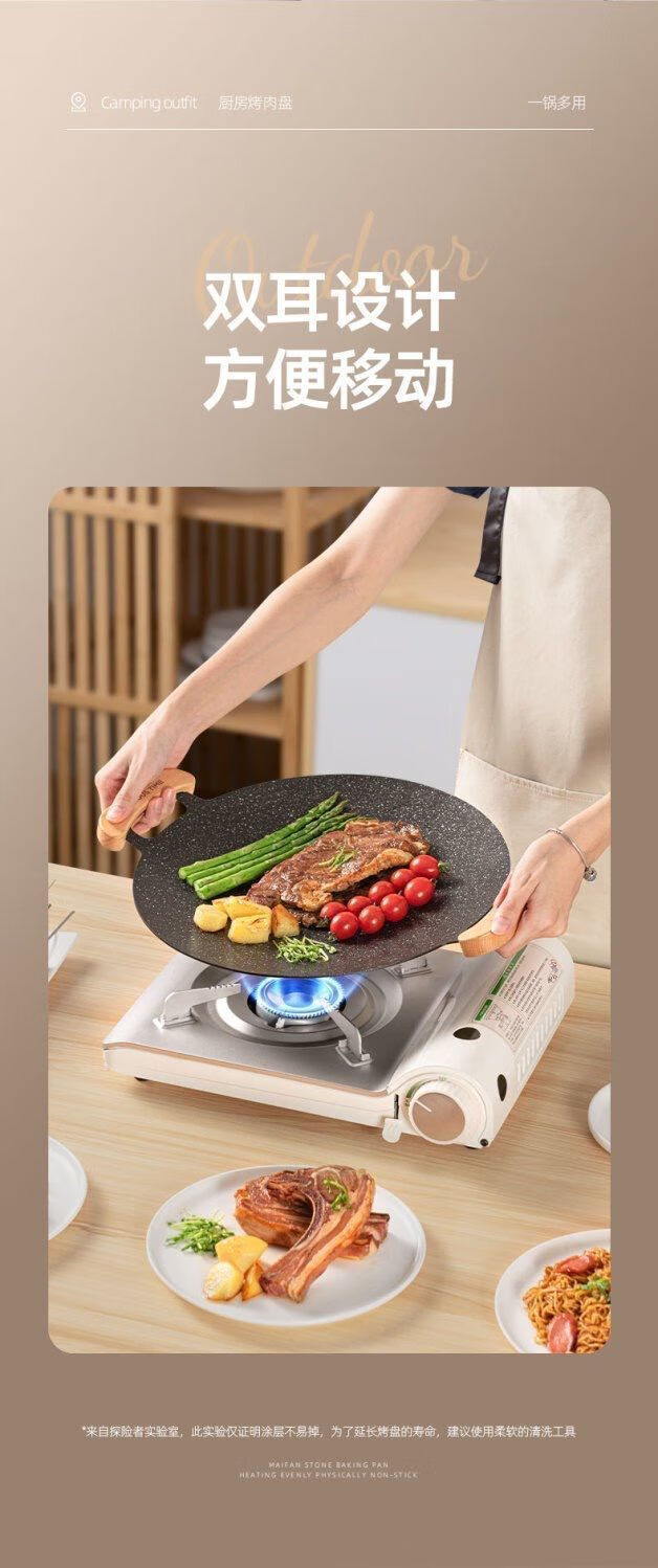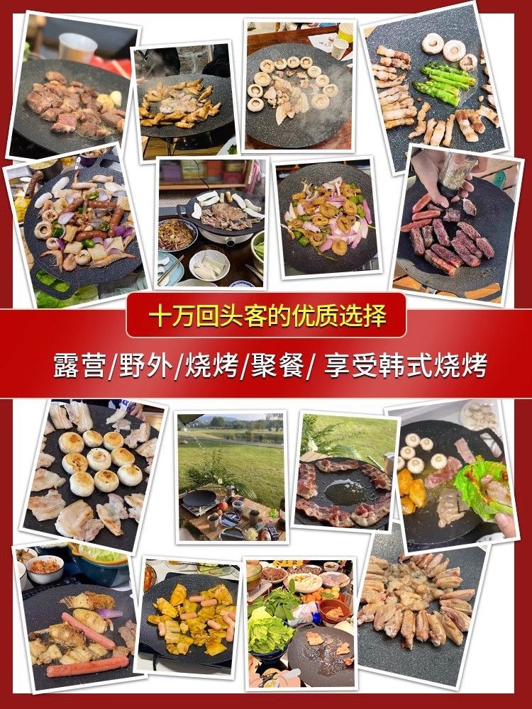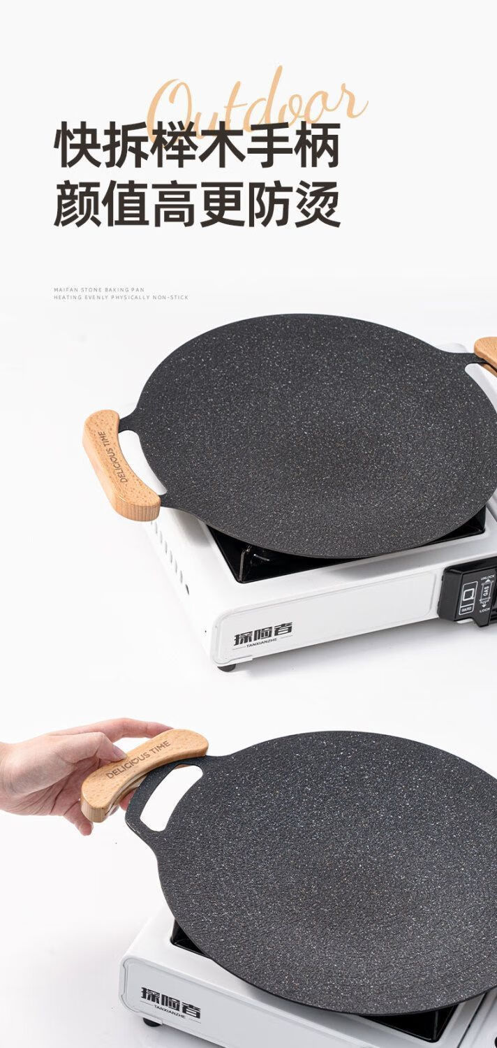 北岳户外烤盘麦饭石卡式炉烤肉盘韩式铁板烧烤盘家用电磁炉烤肉锅煎盘 明火款30cm+收纳袋