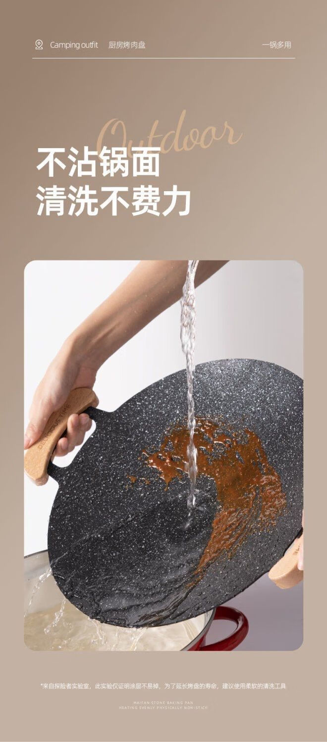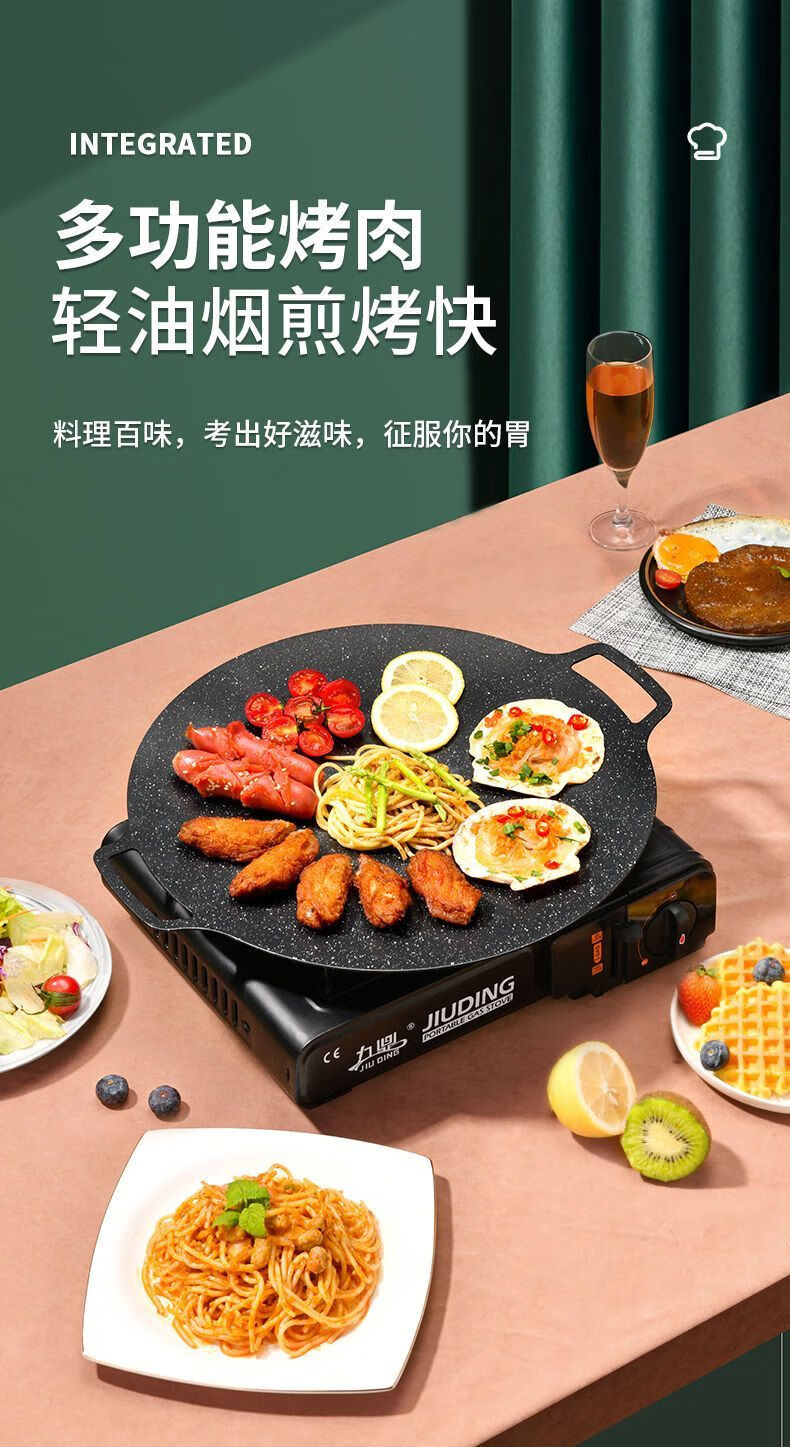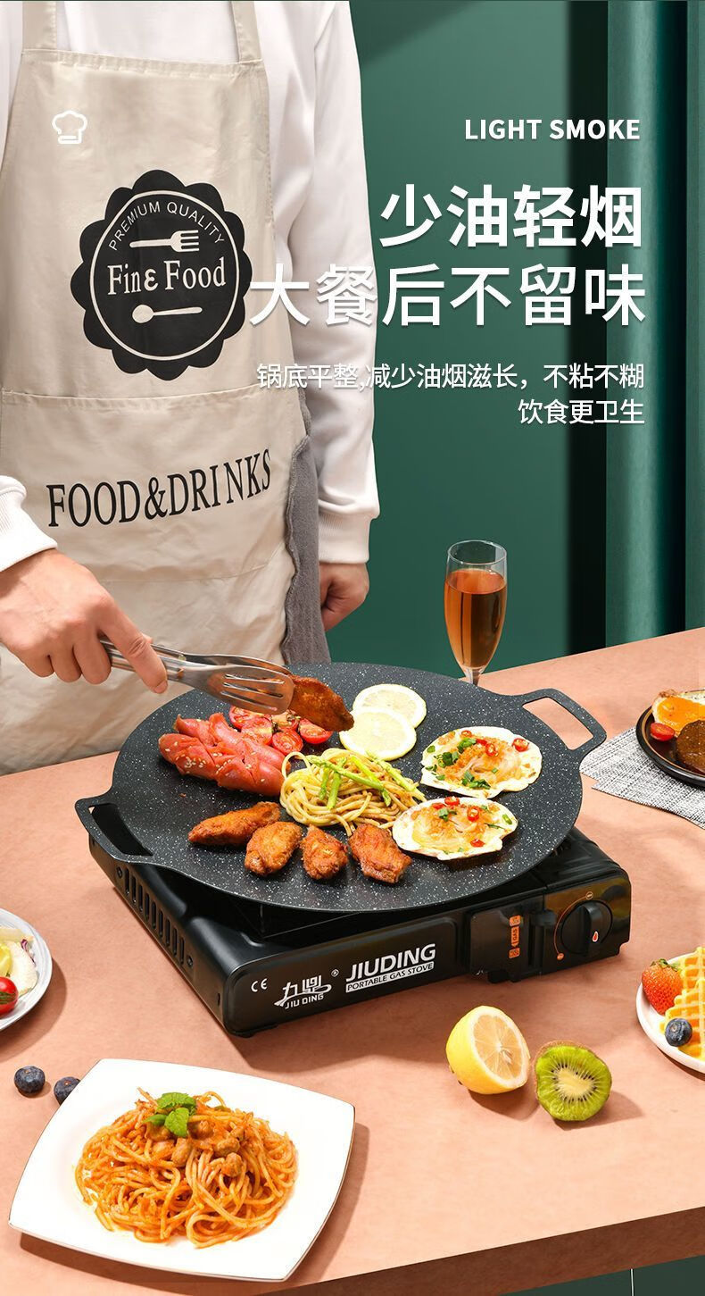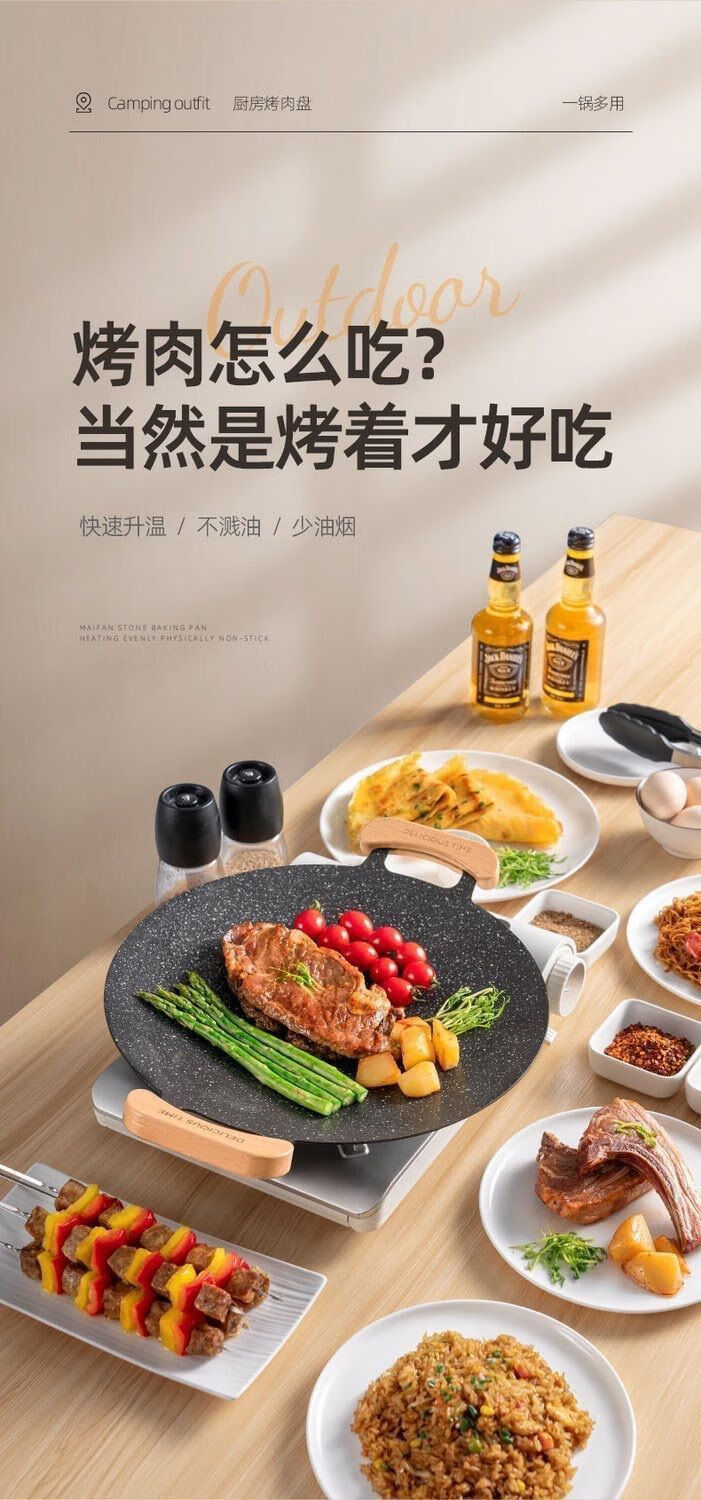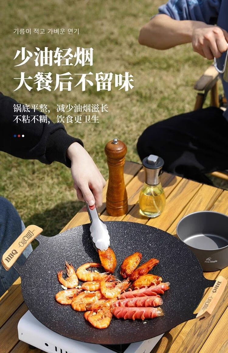 北岳户外烤盘麦饭石卡式炉烤肉盘韩式铁板烧烤盘家用电磁炉烤肉锅煎盘 明火款30cm+收纳袋