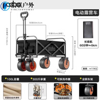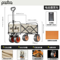 PADOA2024新款电动露营车聚拢型超大可折叠手推车户外出行野营手拉车 电动聚拢款-耀黑色200L+折叠桌板