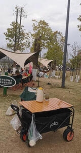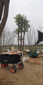 这露营车简直是出门游玩必备神器,轮子很宽很大,看起来就感觉感慢慢不会坏,容量也够大,老婆走累了坐在车上休息也很稳定,承重力很强,车的底板是硬的,坐在上面都不想下来了哈哈,出去玩拉着它很方便,客服态度很好,不错,值得收藏购买!