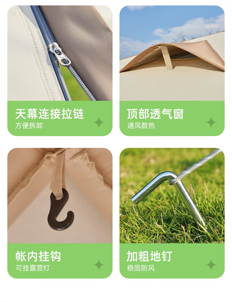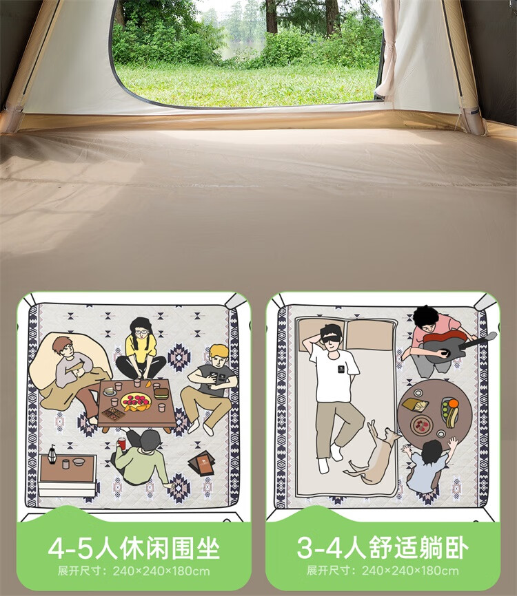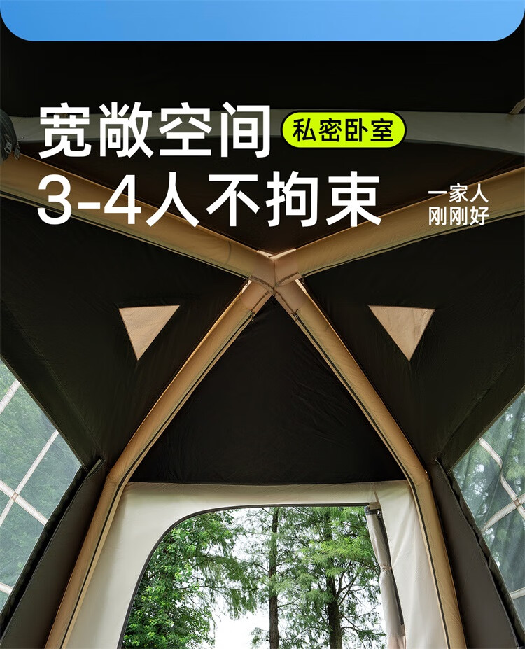 这款帐篷真的超乎预期,搭建特别方便,几分钟就能搞定。黑胶面料遮光效果很好,白天也能睡得很香。空间足够大,两个人用完全不挤,垫子也很厚实,躺着特别舒服。透气性不错,夏天用也不会闷热。性价比很高。
