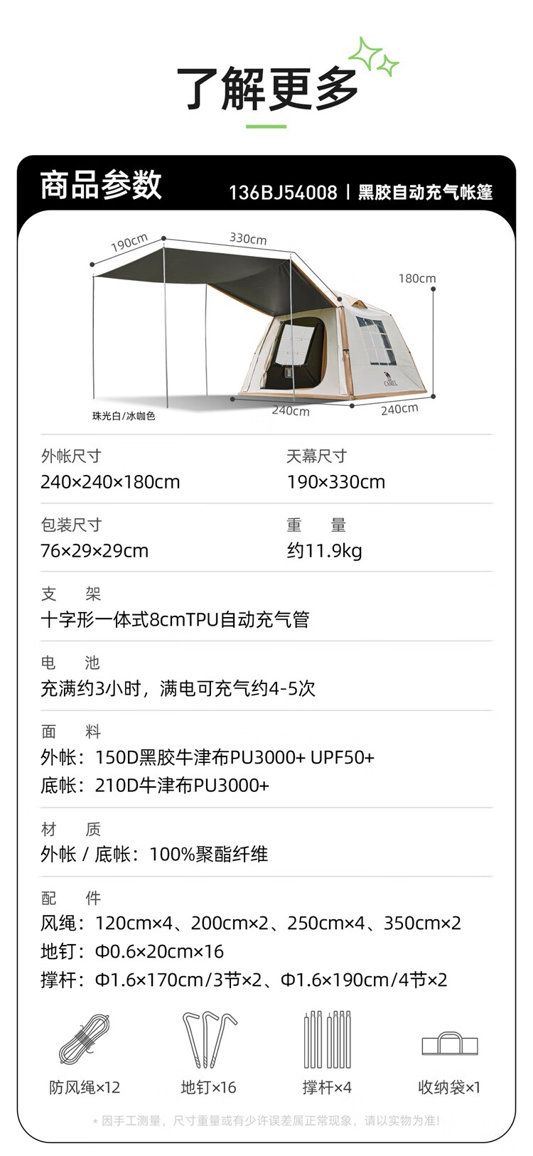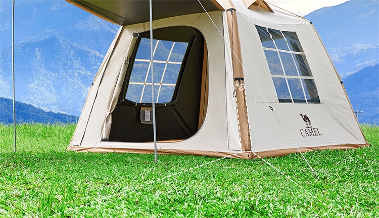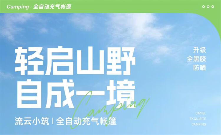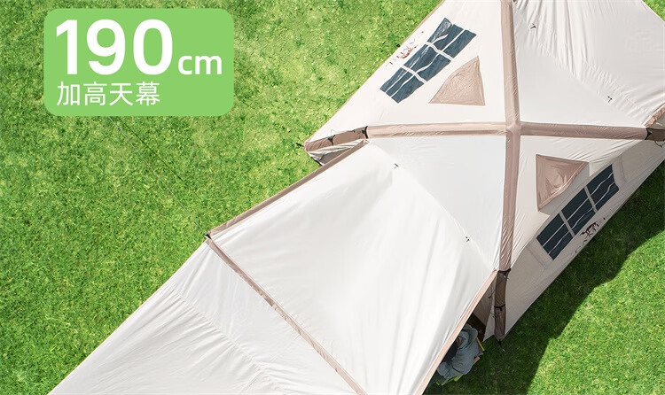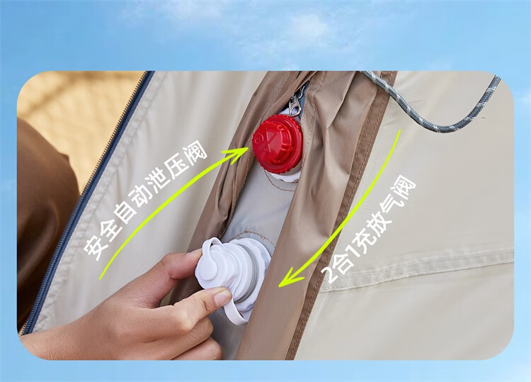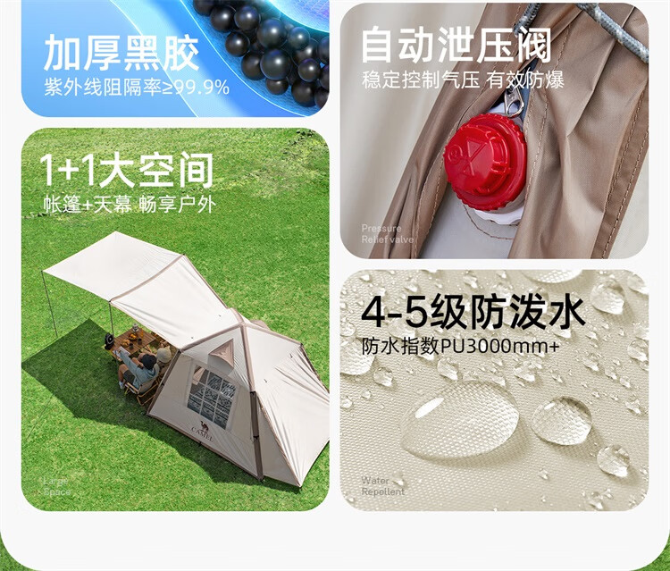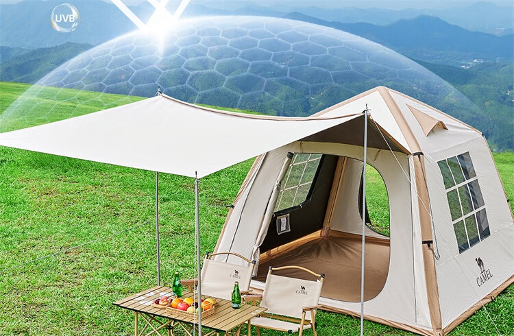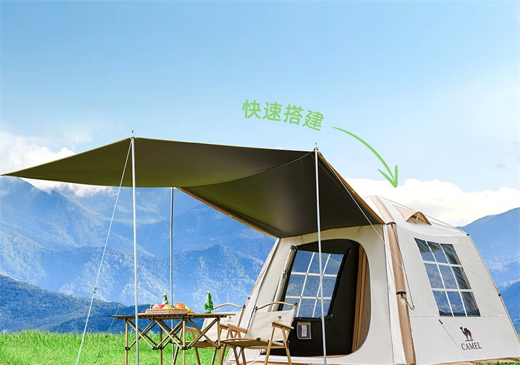 骆驼流云小筑黑胶免搭自动充气户外过夜露营野营专业装备天幕帐篷 珠光白/冰咖色-136BJ54008