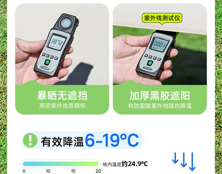 刚收到看着挺结实,出去露营用了几次很方便,遮阳效果不错,价格也公道。收纳起来不占地方。